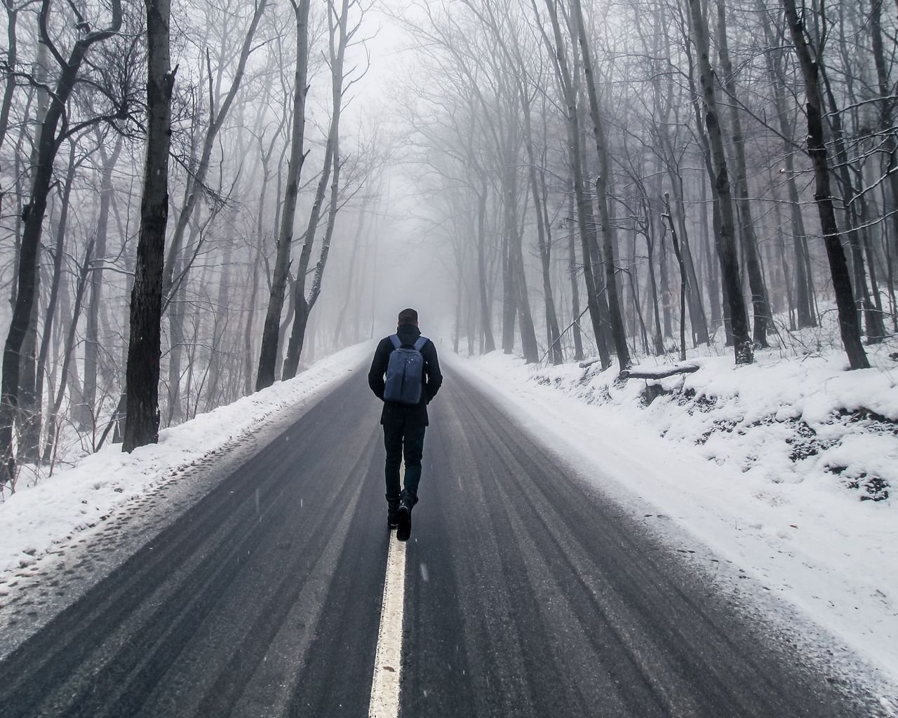 Человек на зимней дороге