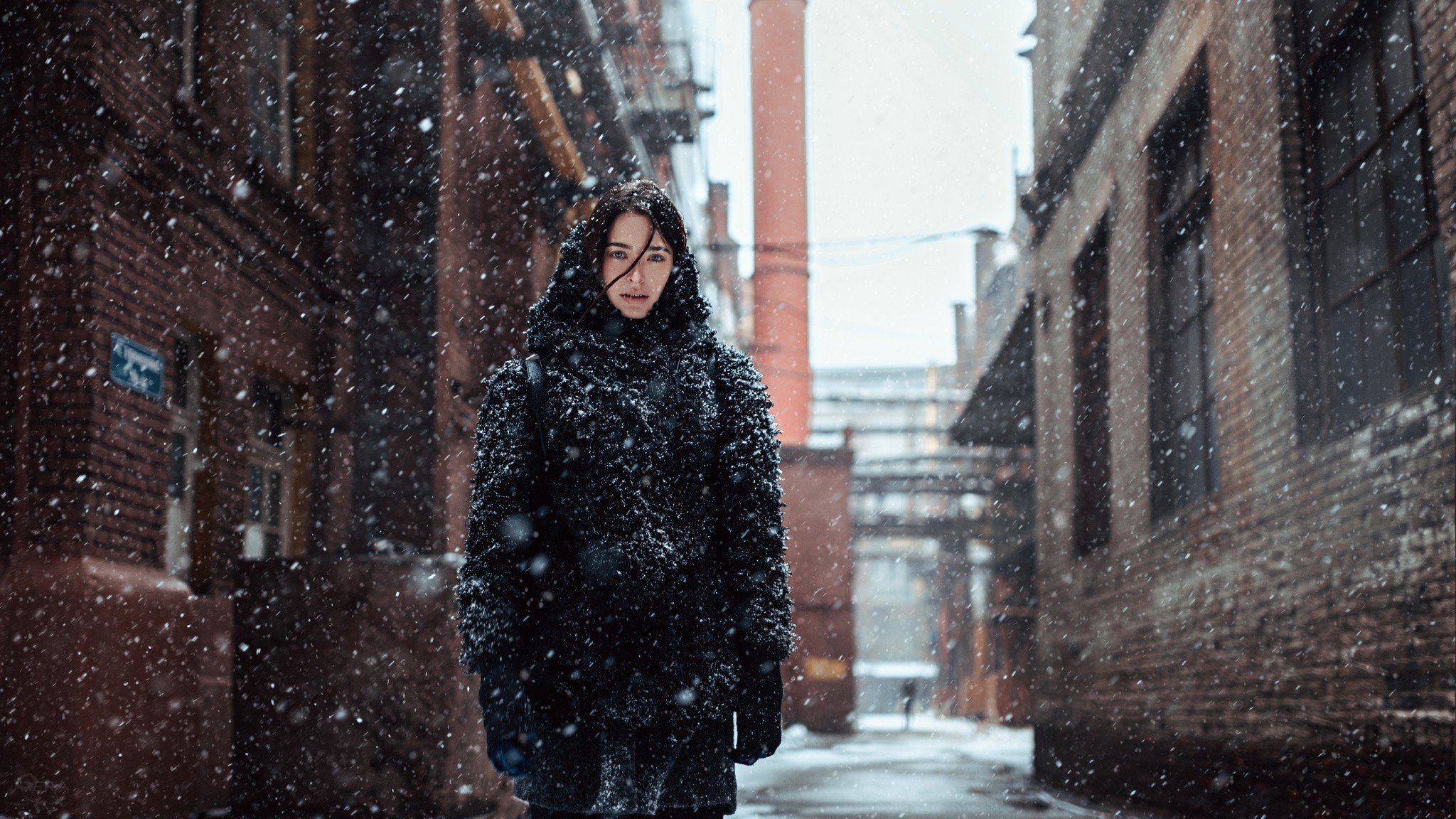 Девушка на фоне снега