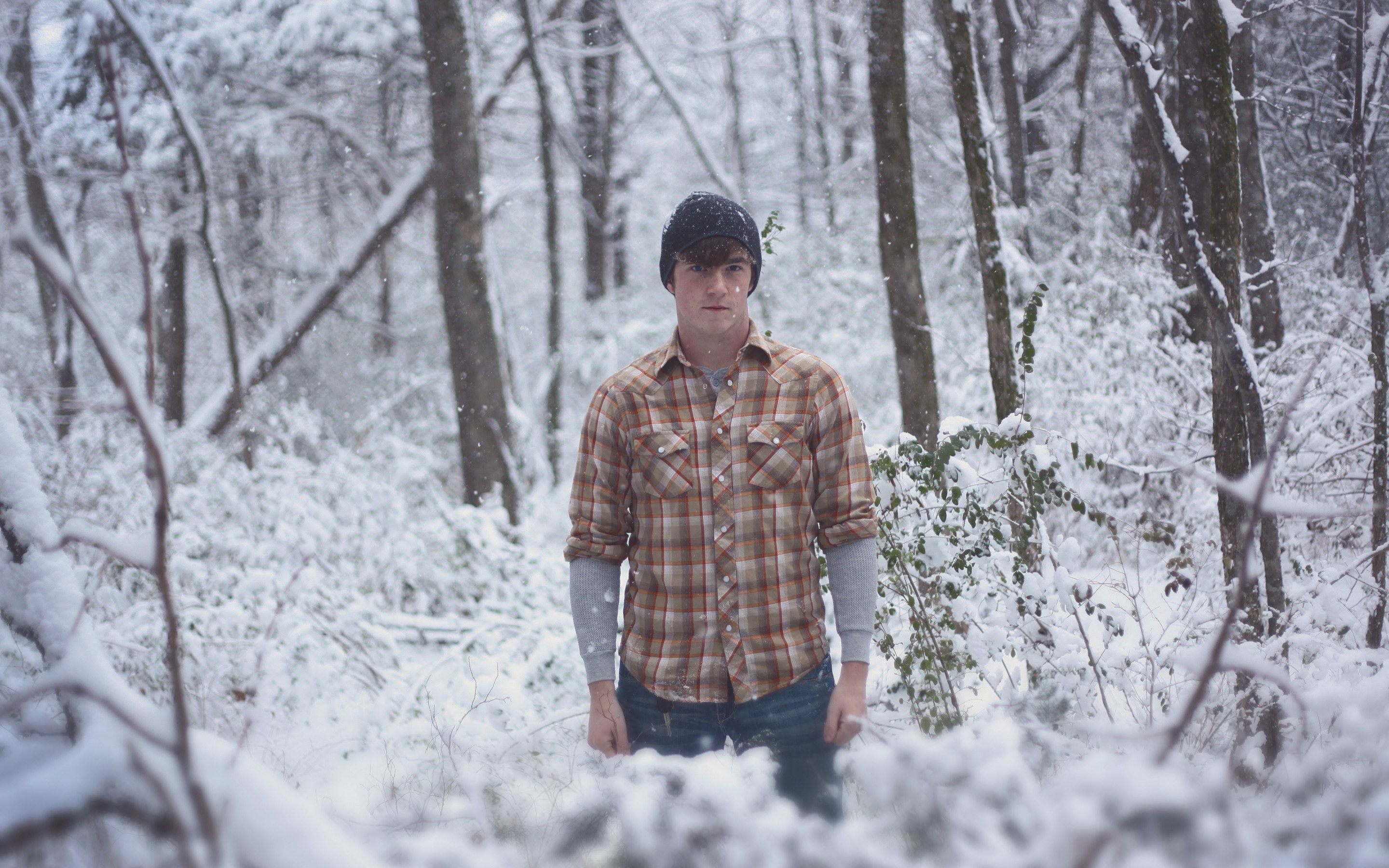 Парень в зимнем лесу