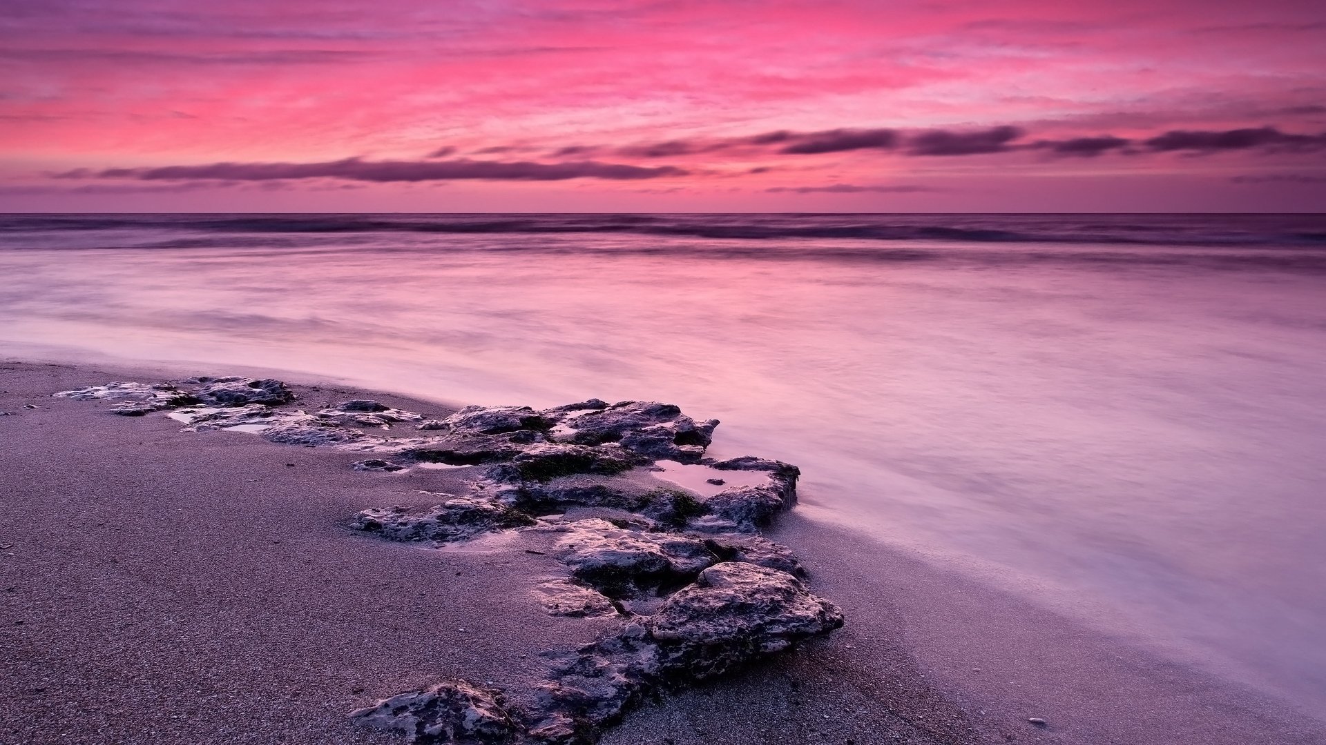 Розовый закат на море