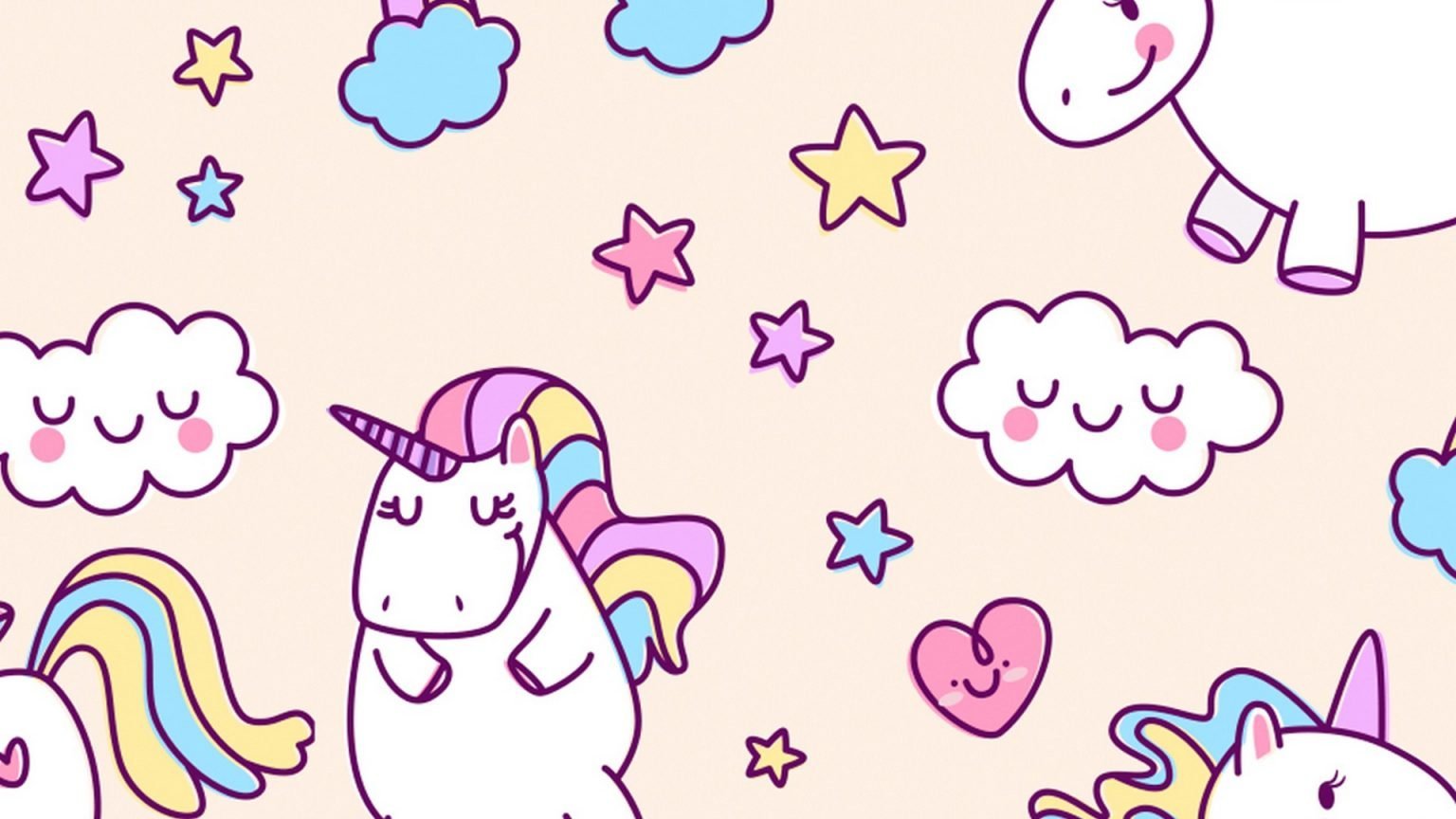 Много единорогов на белом фоне