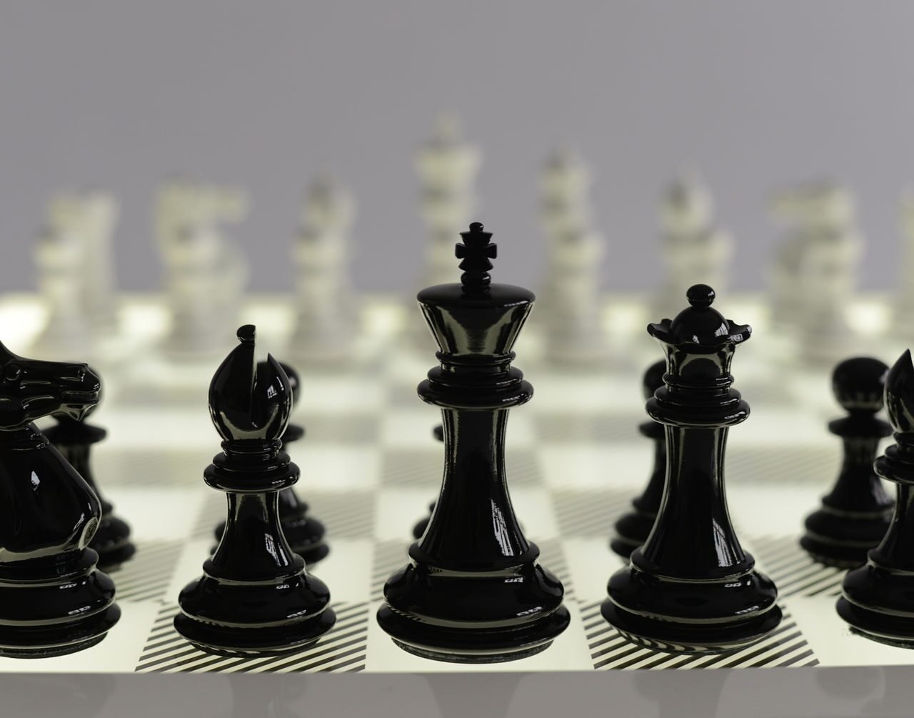 ![Шахматные фигуры на черном фоне]()