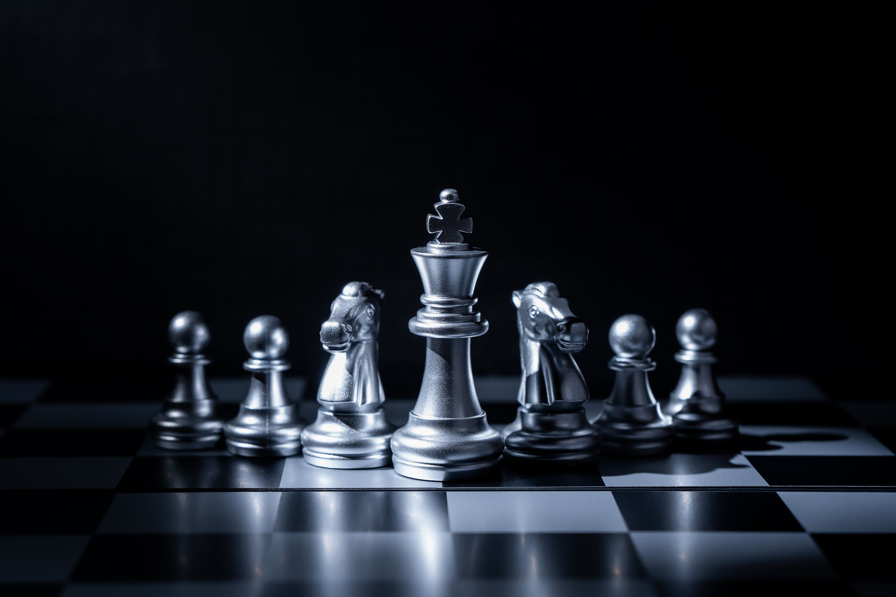 ![Шахматные фигуры на темном фоне]()