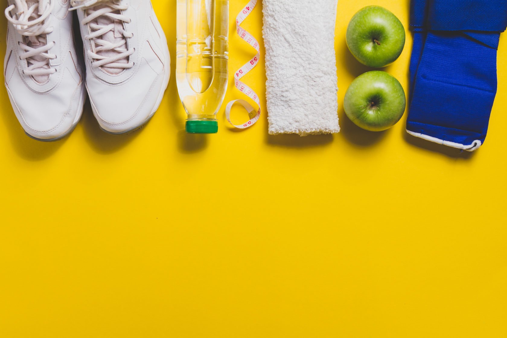 Спортивный инвентарь на жёлтом фоне
