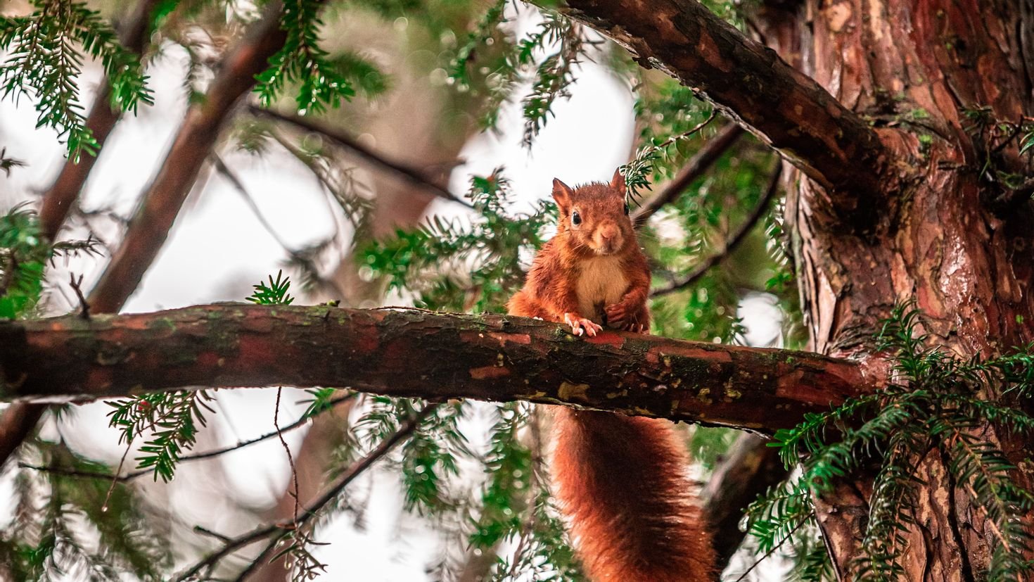 Белка рыжая на дереве