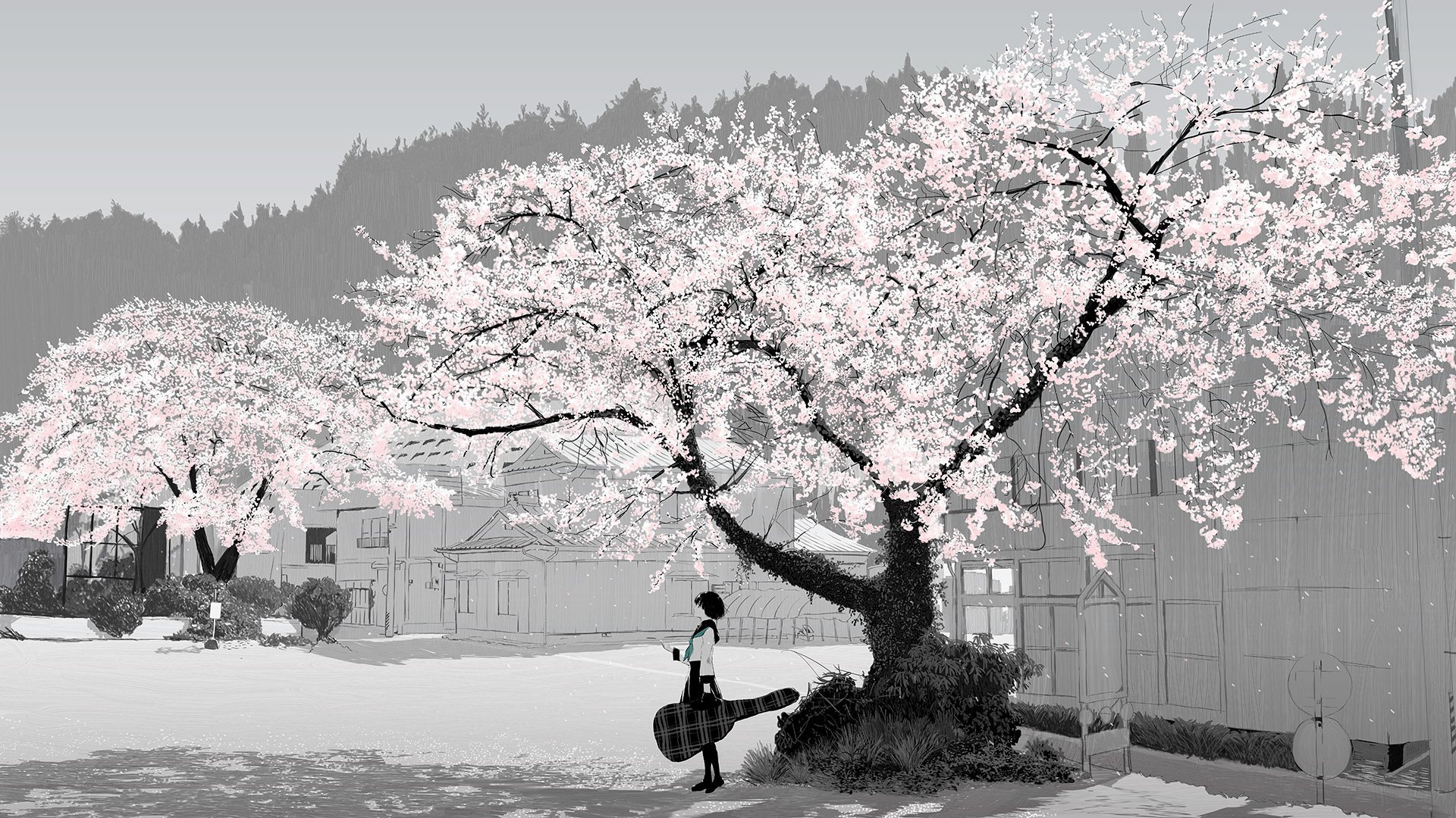 ![Сакура черно белая]()
