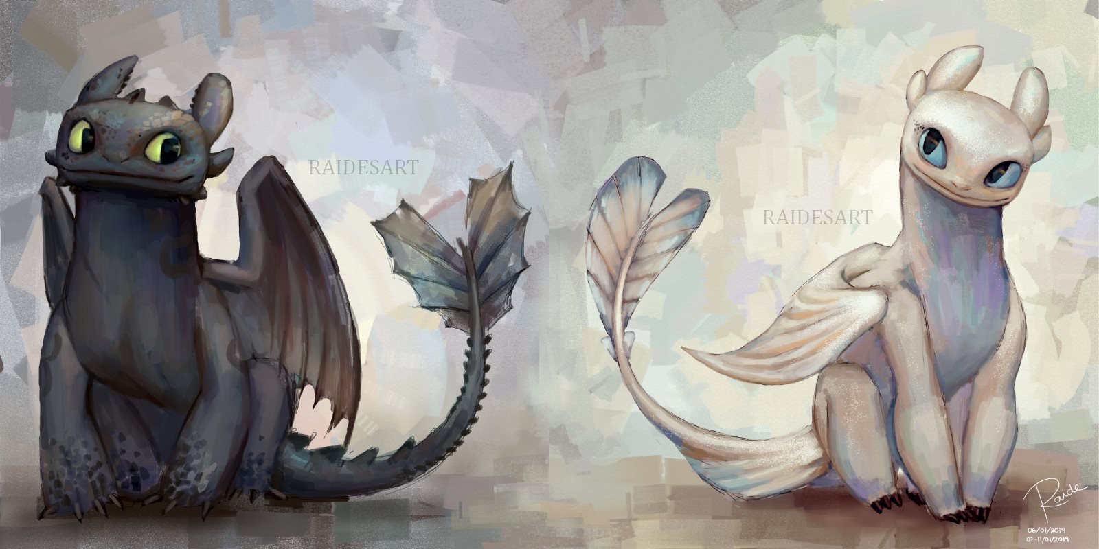 ![Драконы Беззубик и дневная фурия]()