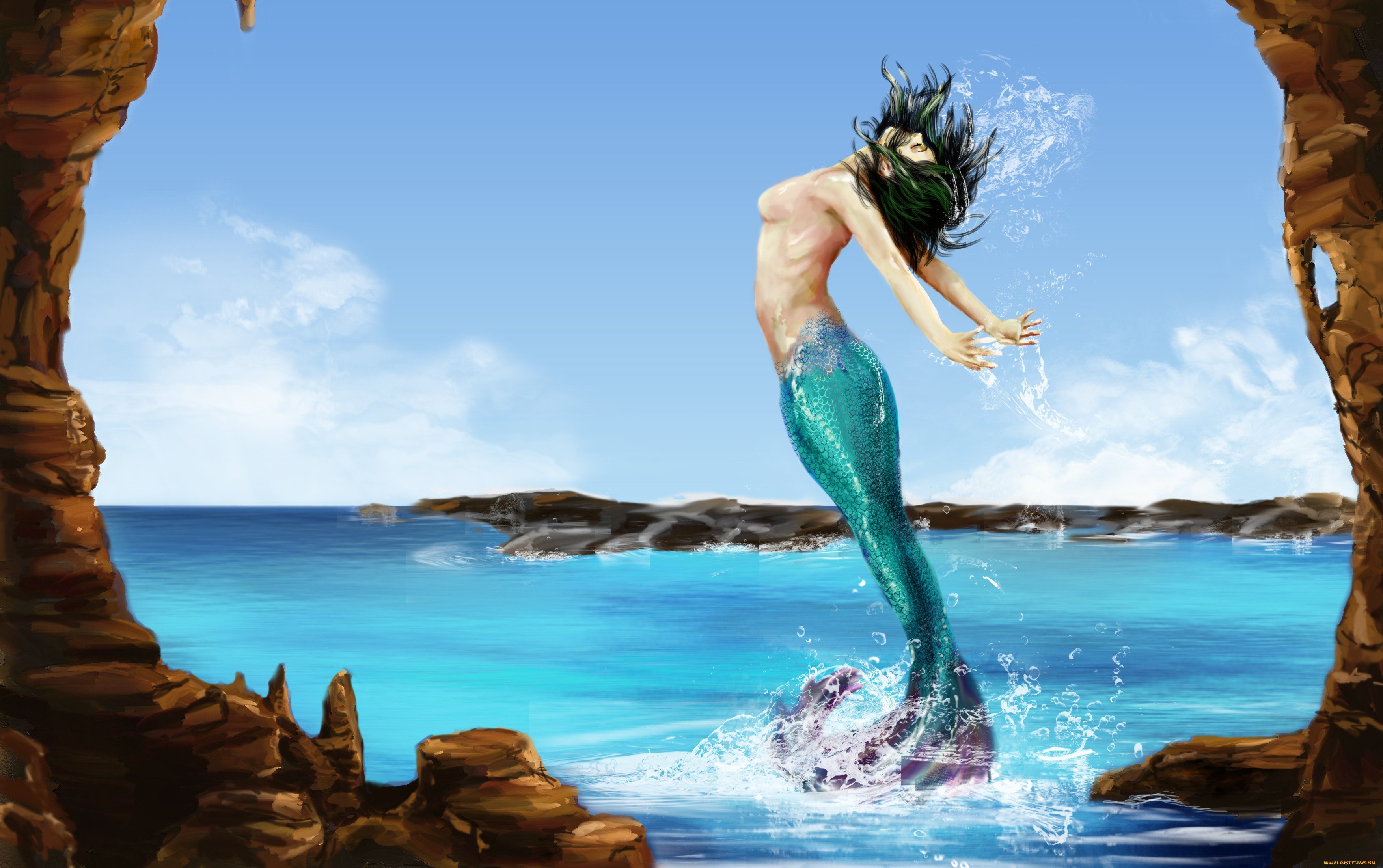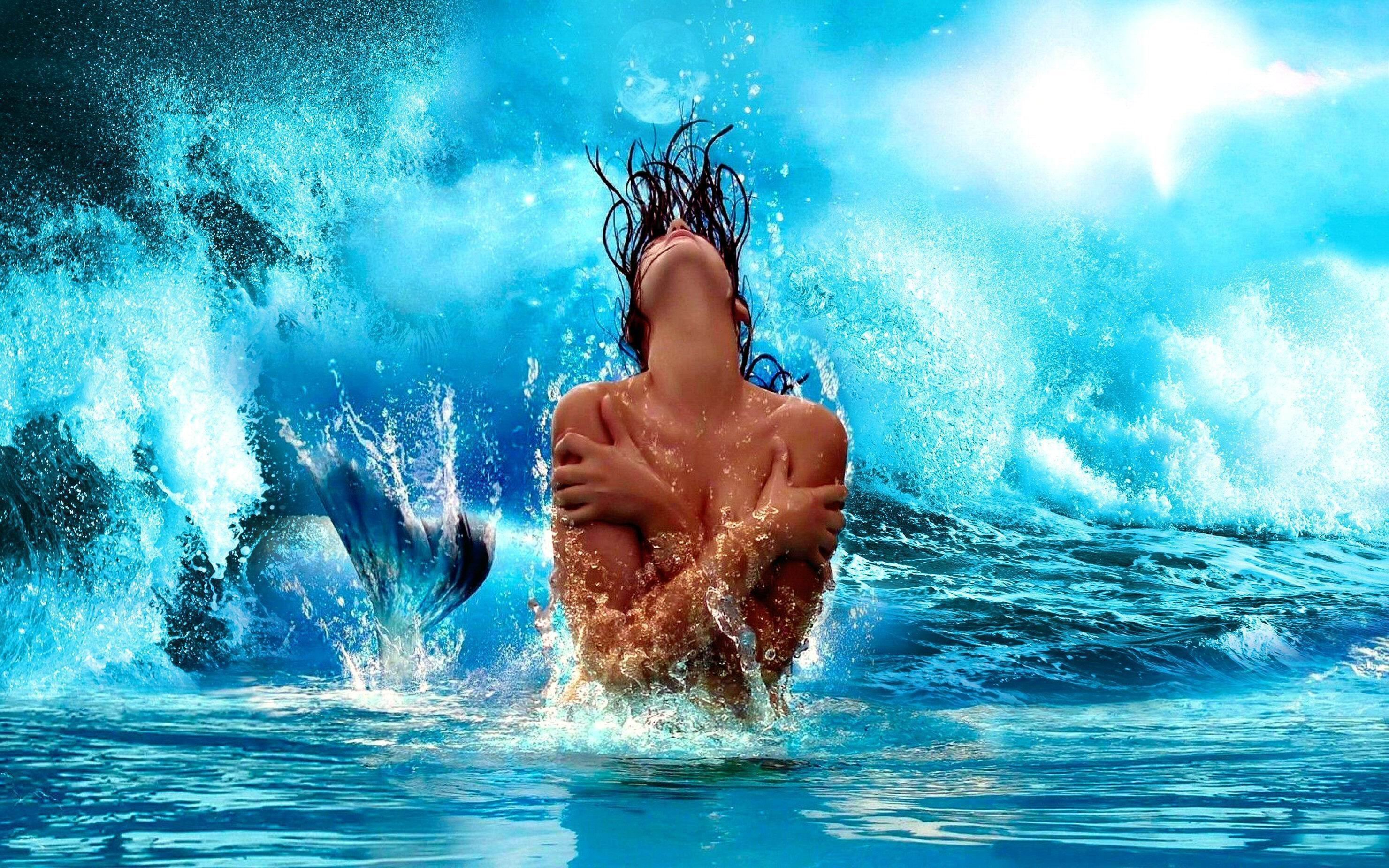 ![Русалка выныривает из воды]()