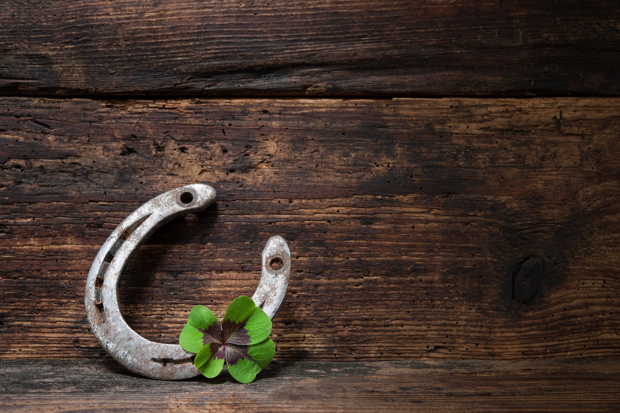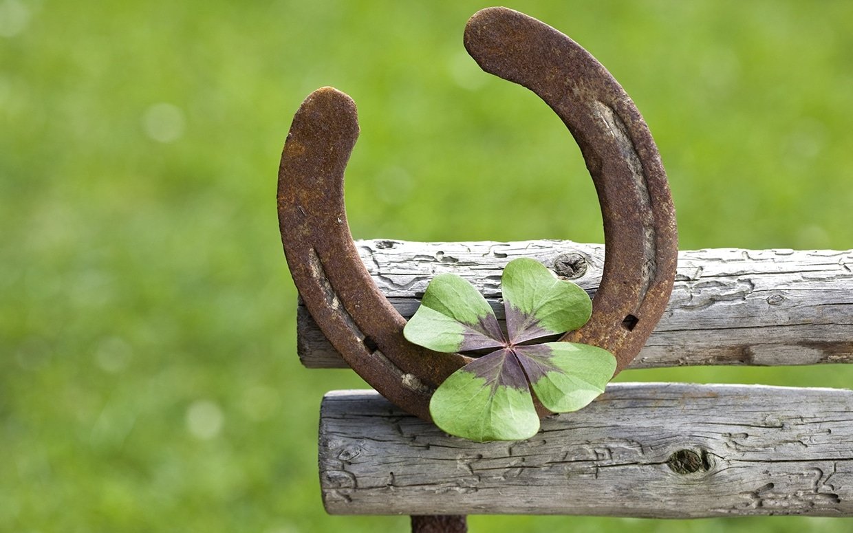 ![Подкова на фоне клевера]()