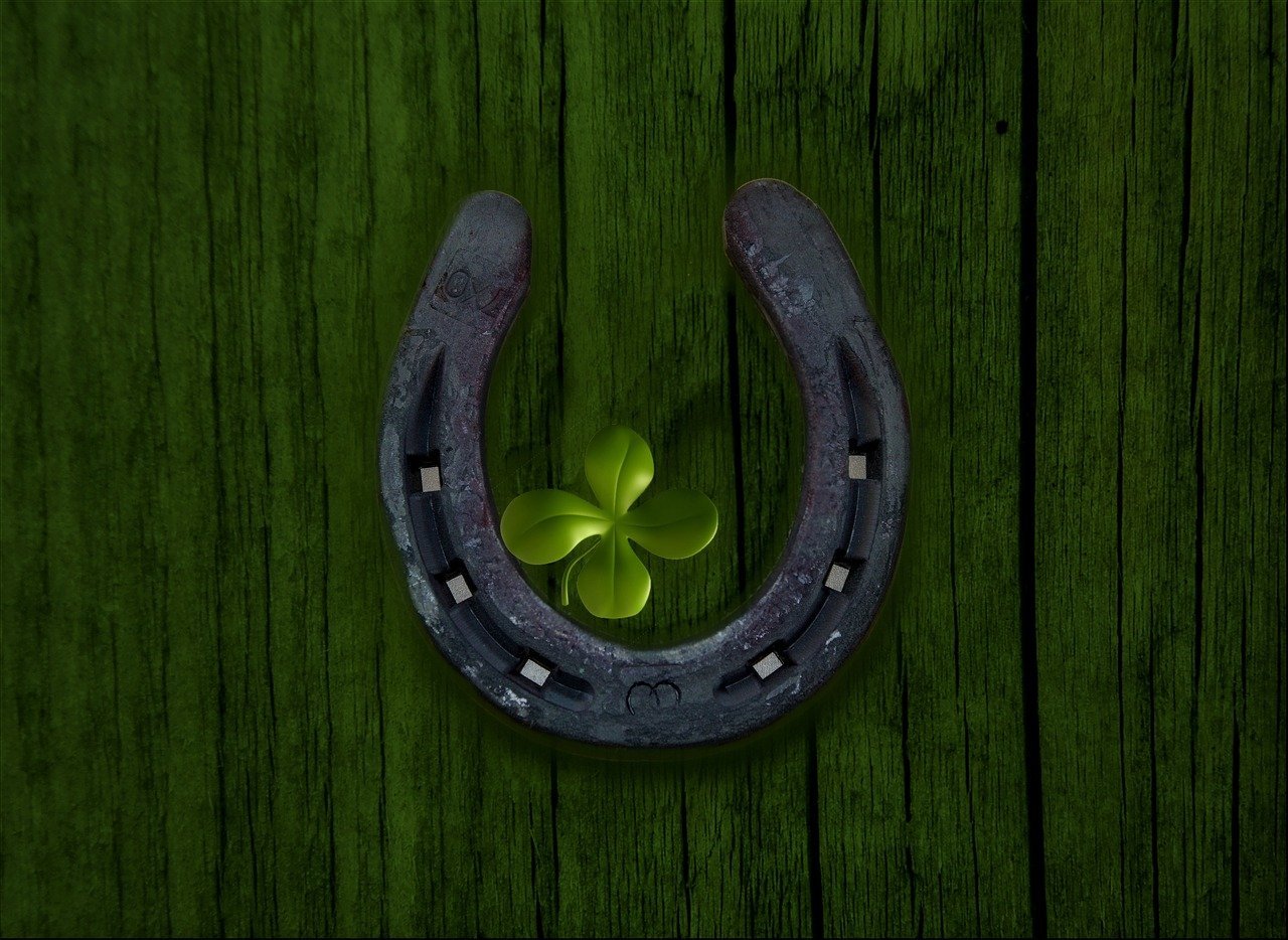 Подкова на фоне клевера