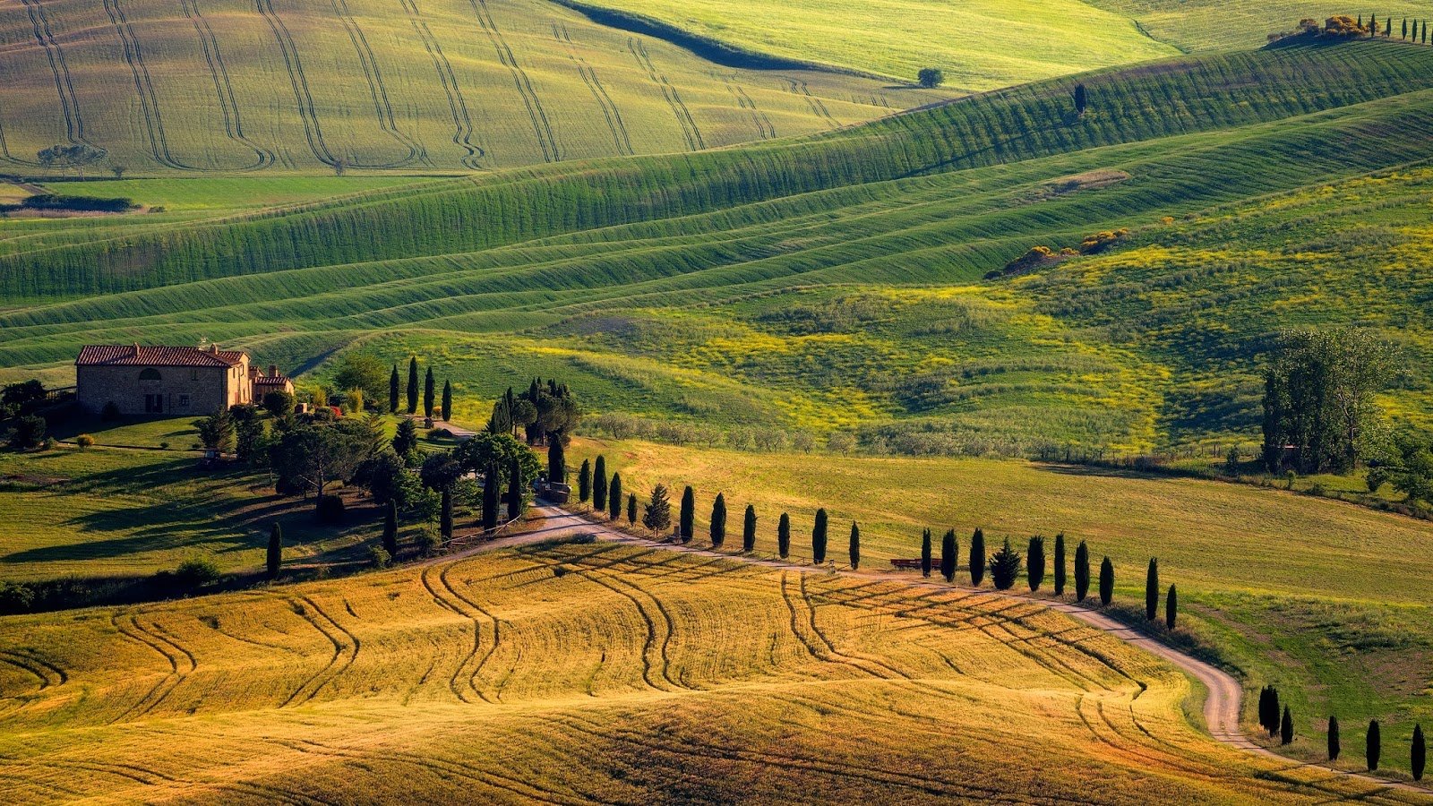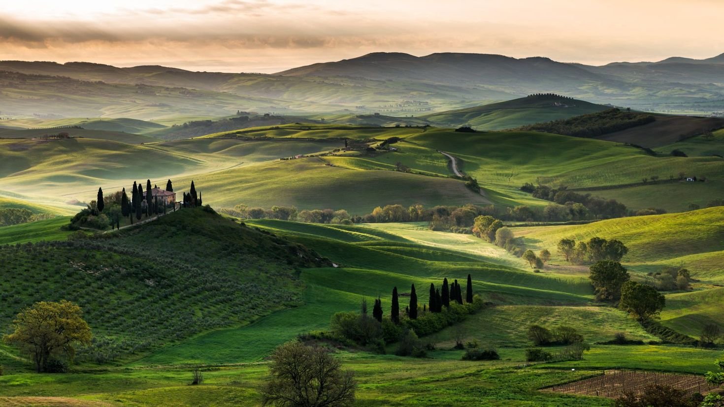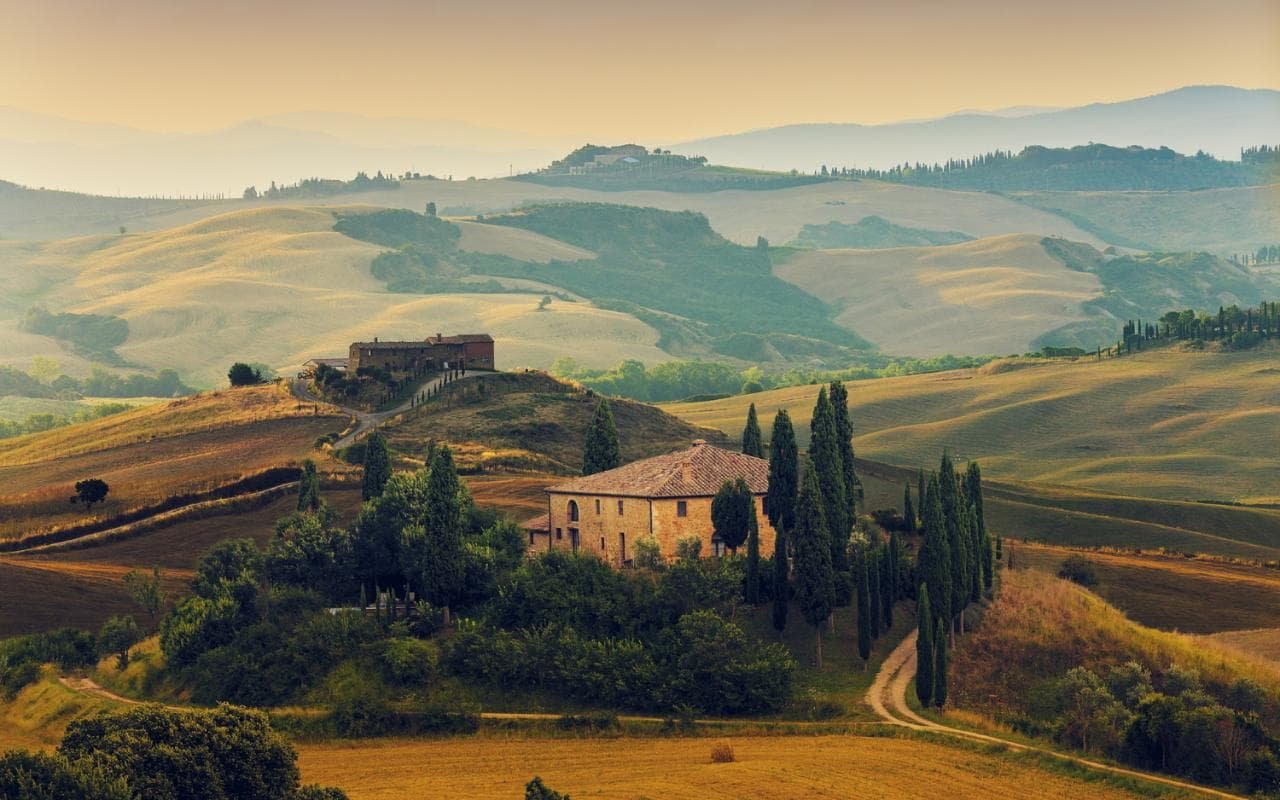 Италия холмы домики Тоскана