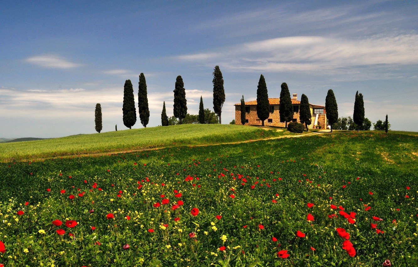 Тоскана холмы кипарисы