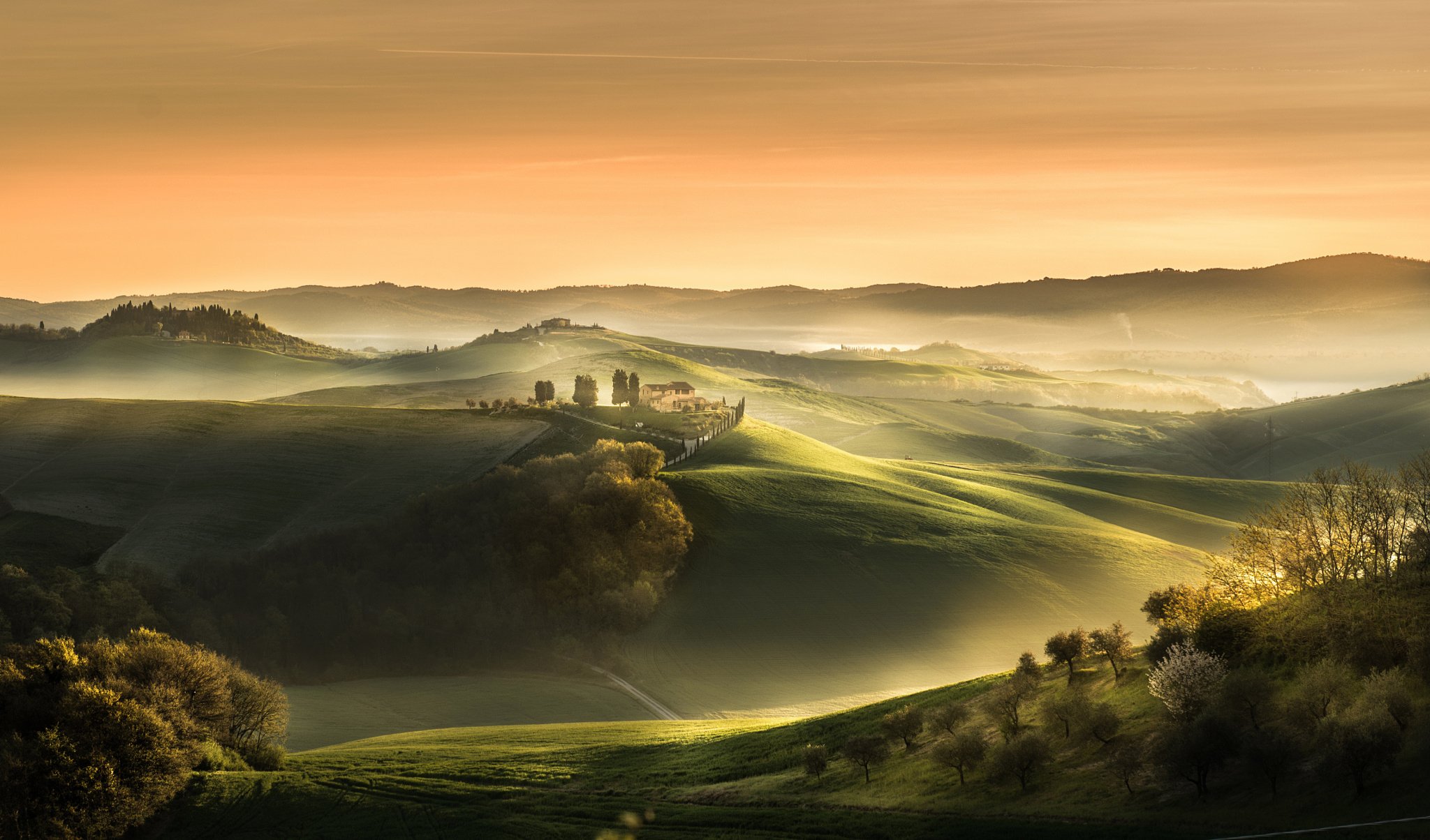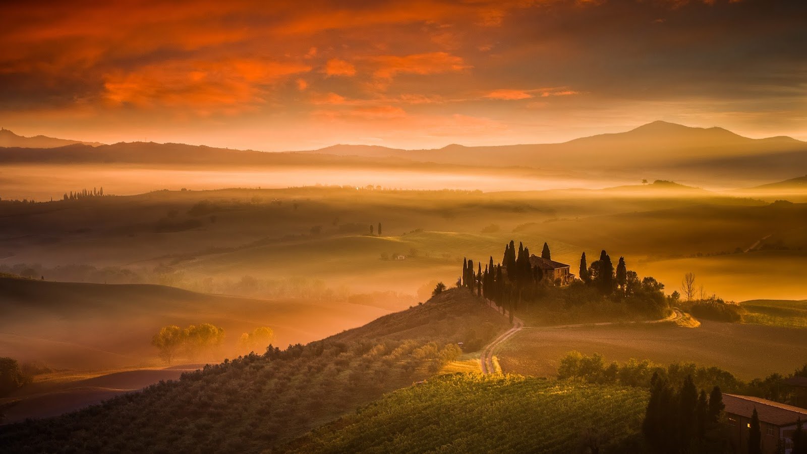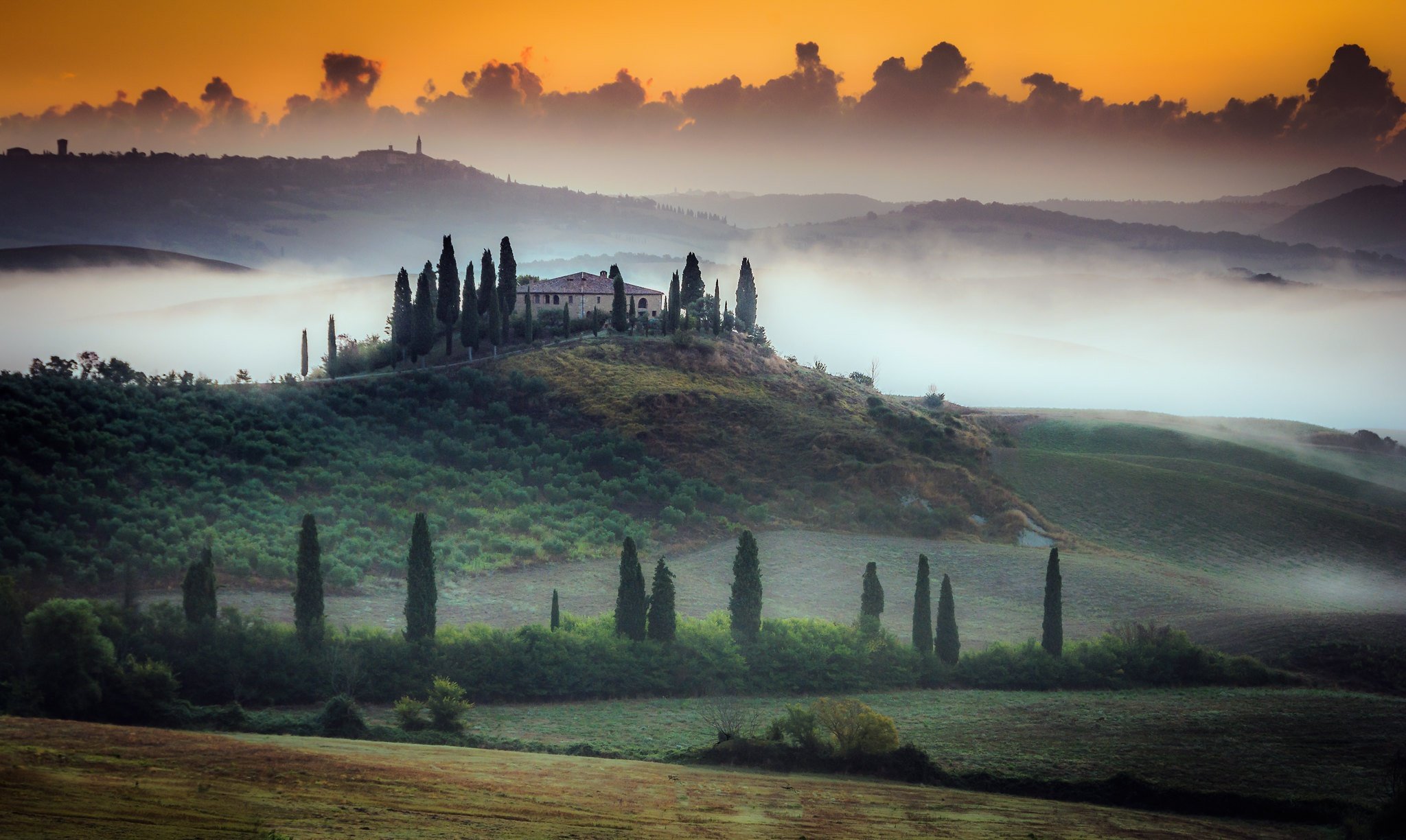 Италия Тоскана природа рассвет