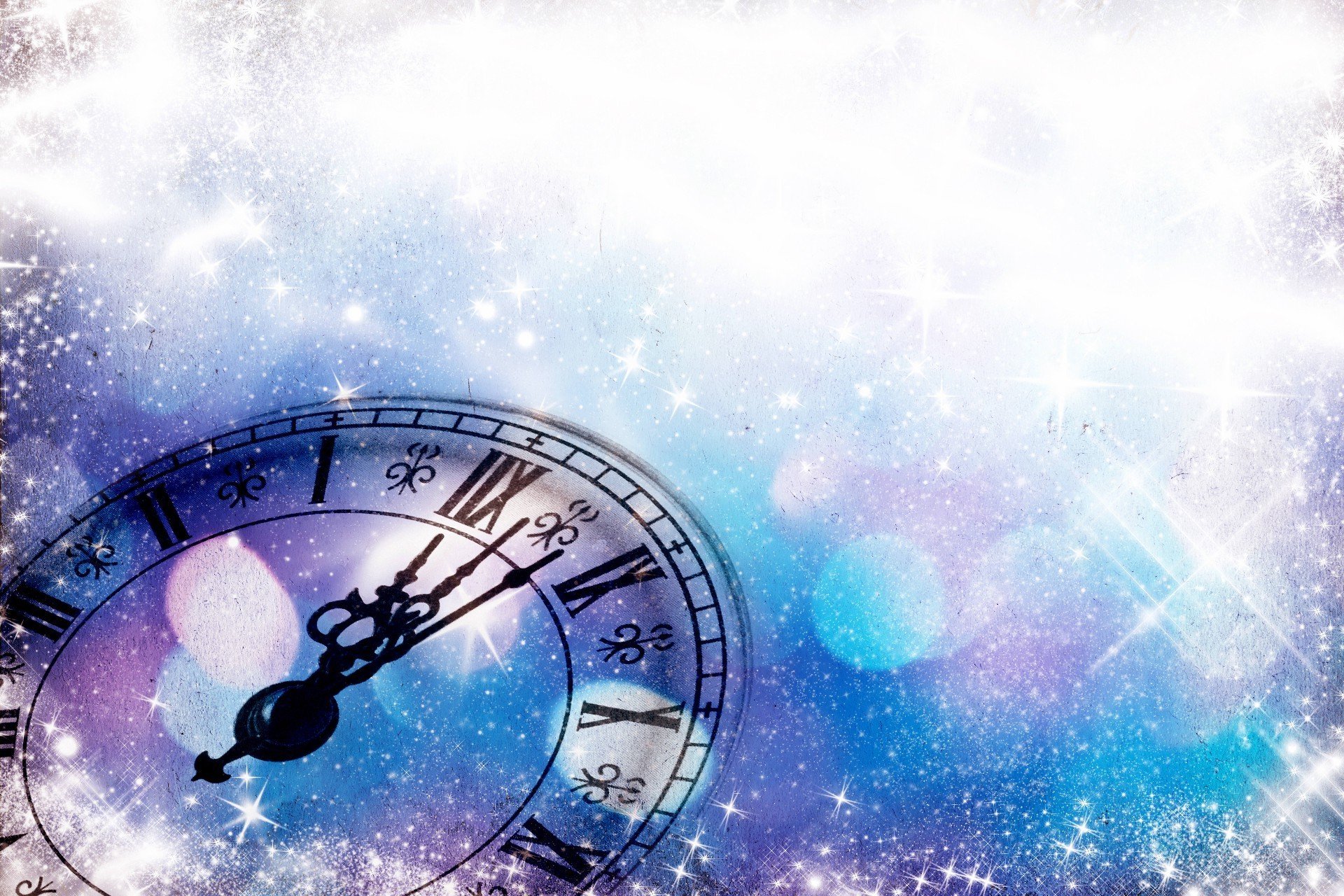 ![Новогодний фон с часами]()