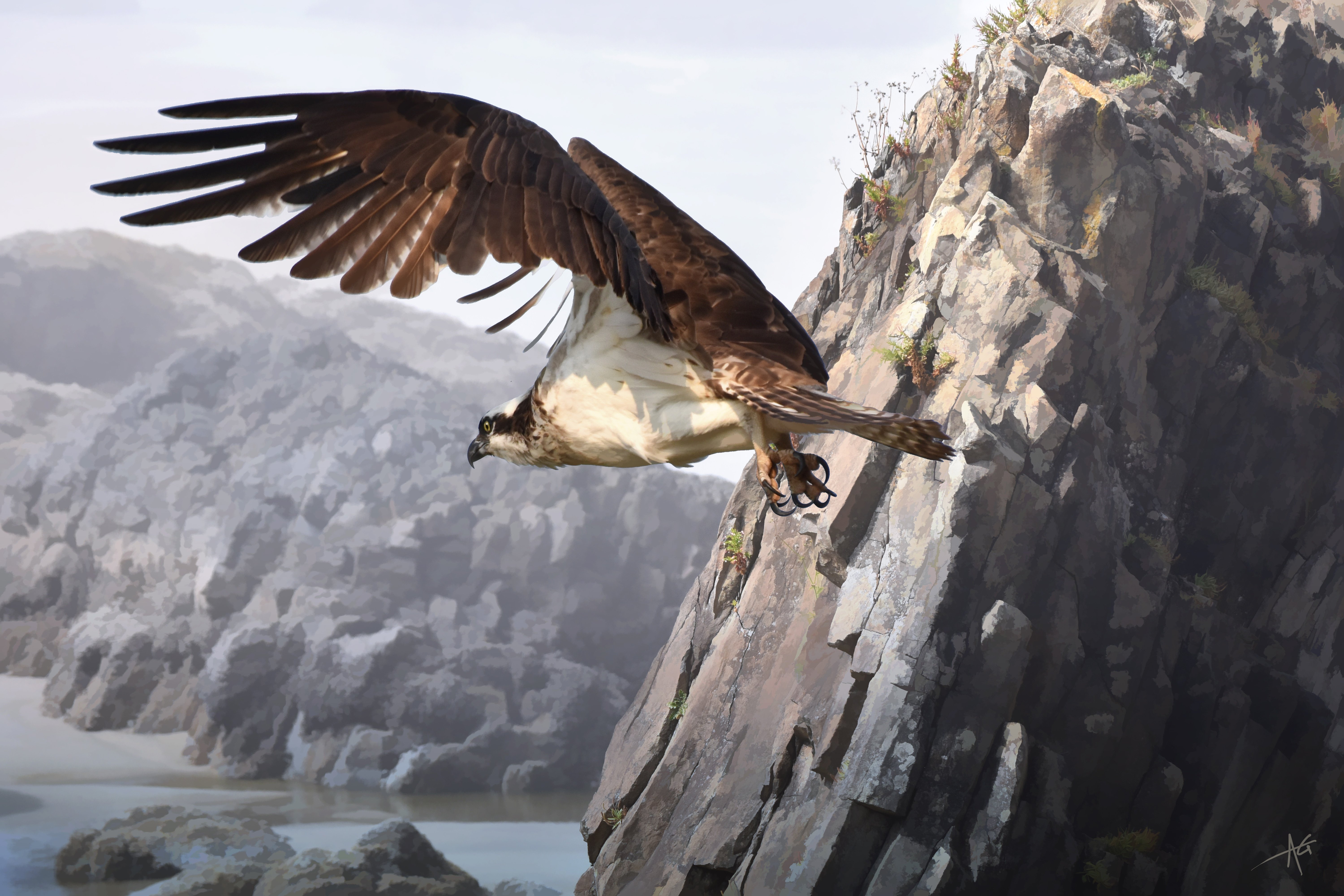 Горный пейзаж с орлом