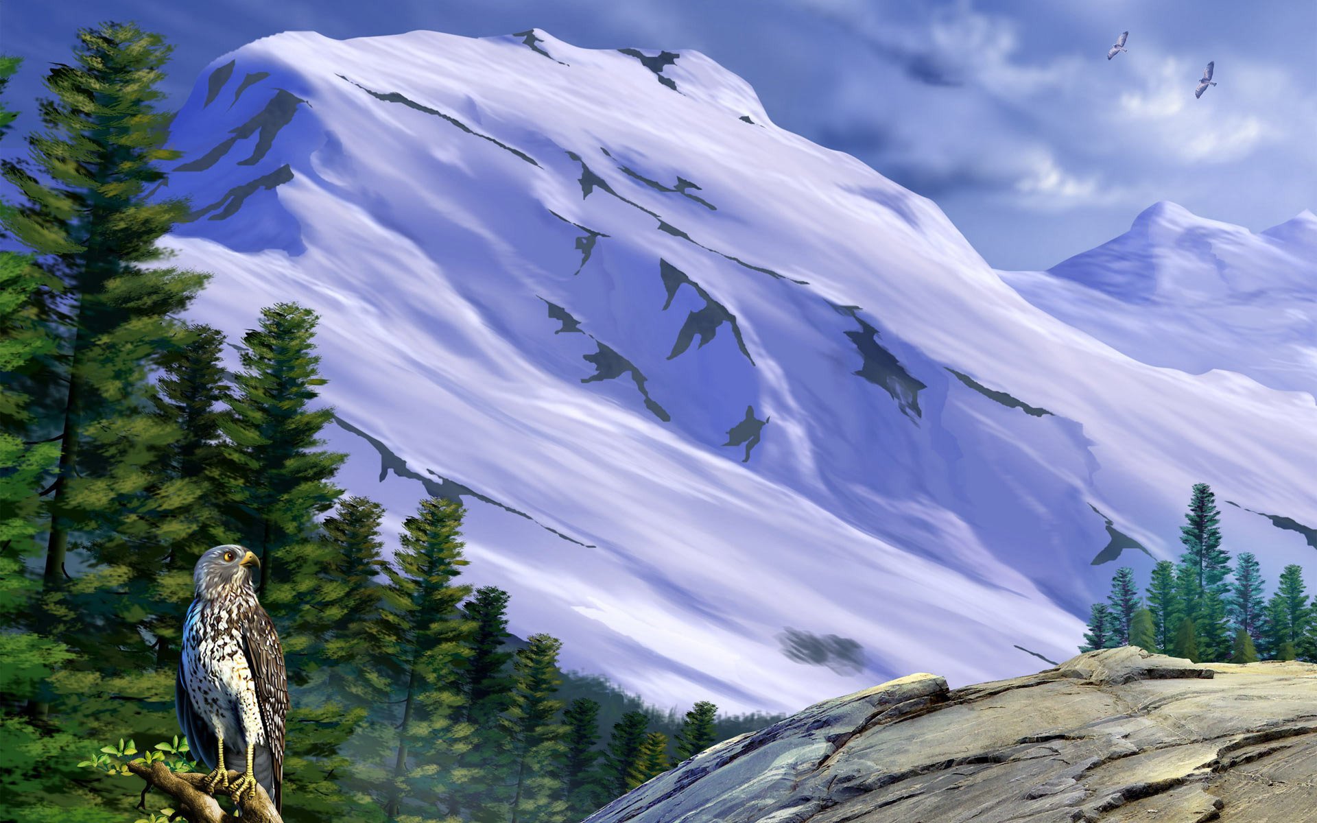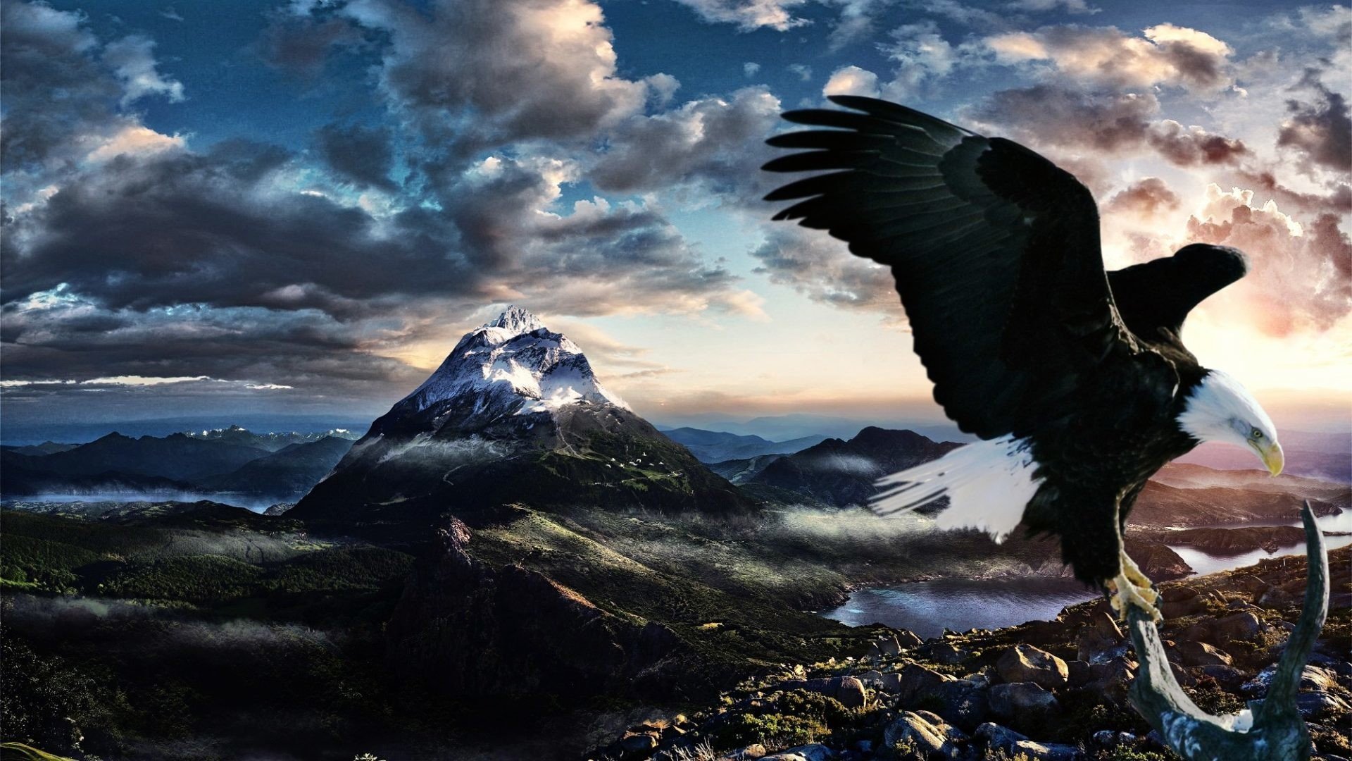 ![Горный пейзаж с орлом]()