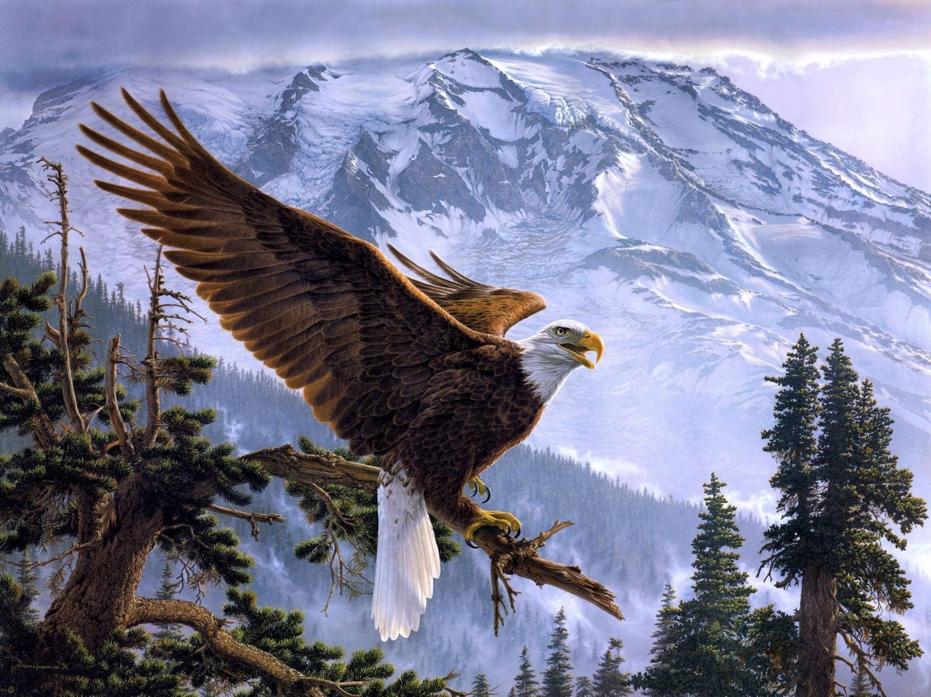 ![Картины с орлом в горах]()