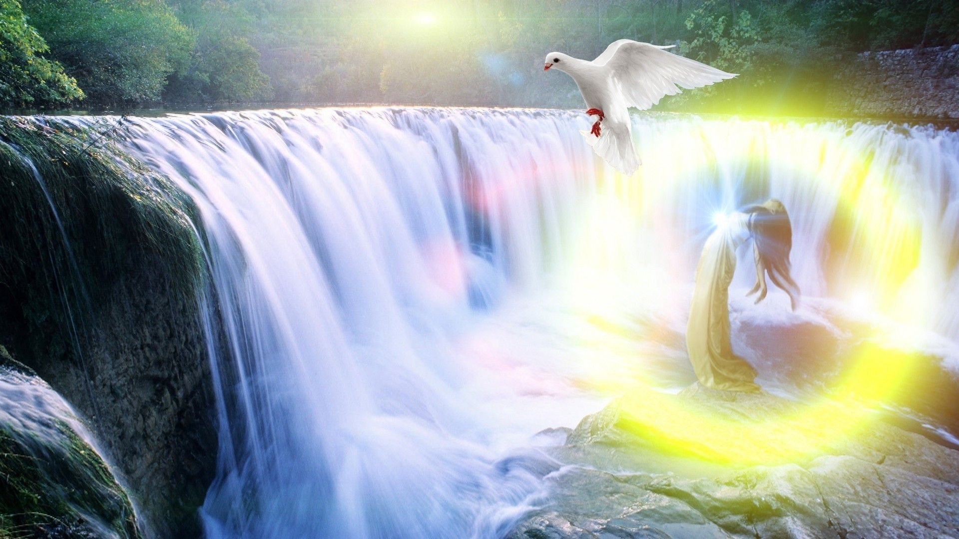 ![Водопад и птицы]()