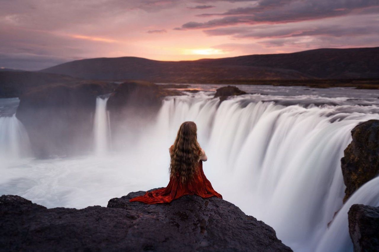 ![Девушка возле водопада]()