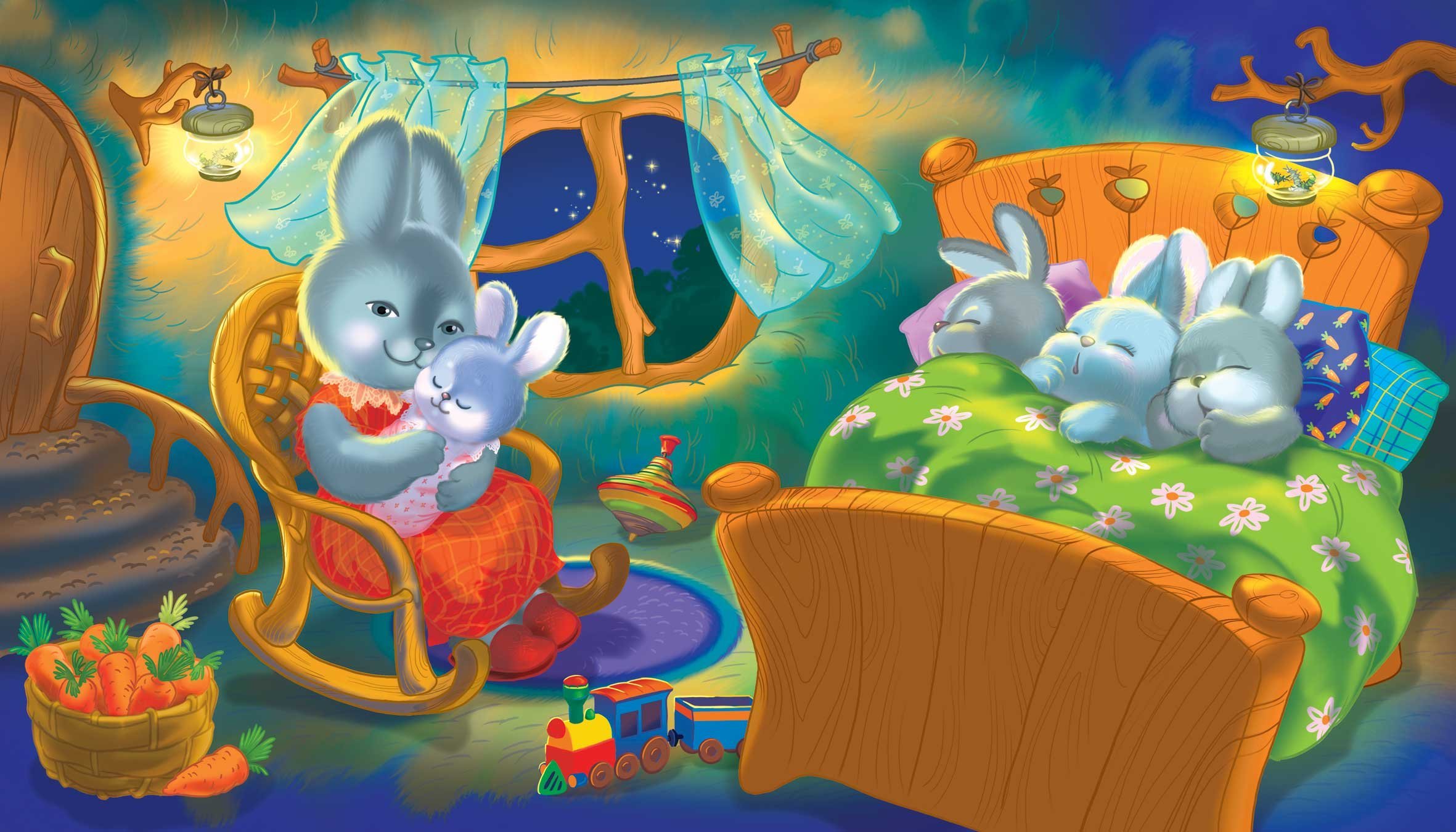 ![Страшная заставка спокойной ночи малыши с зайцем]()