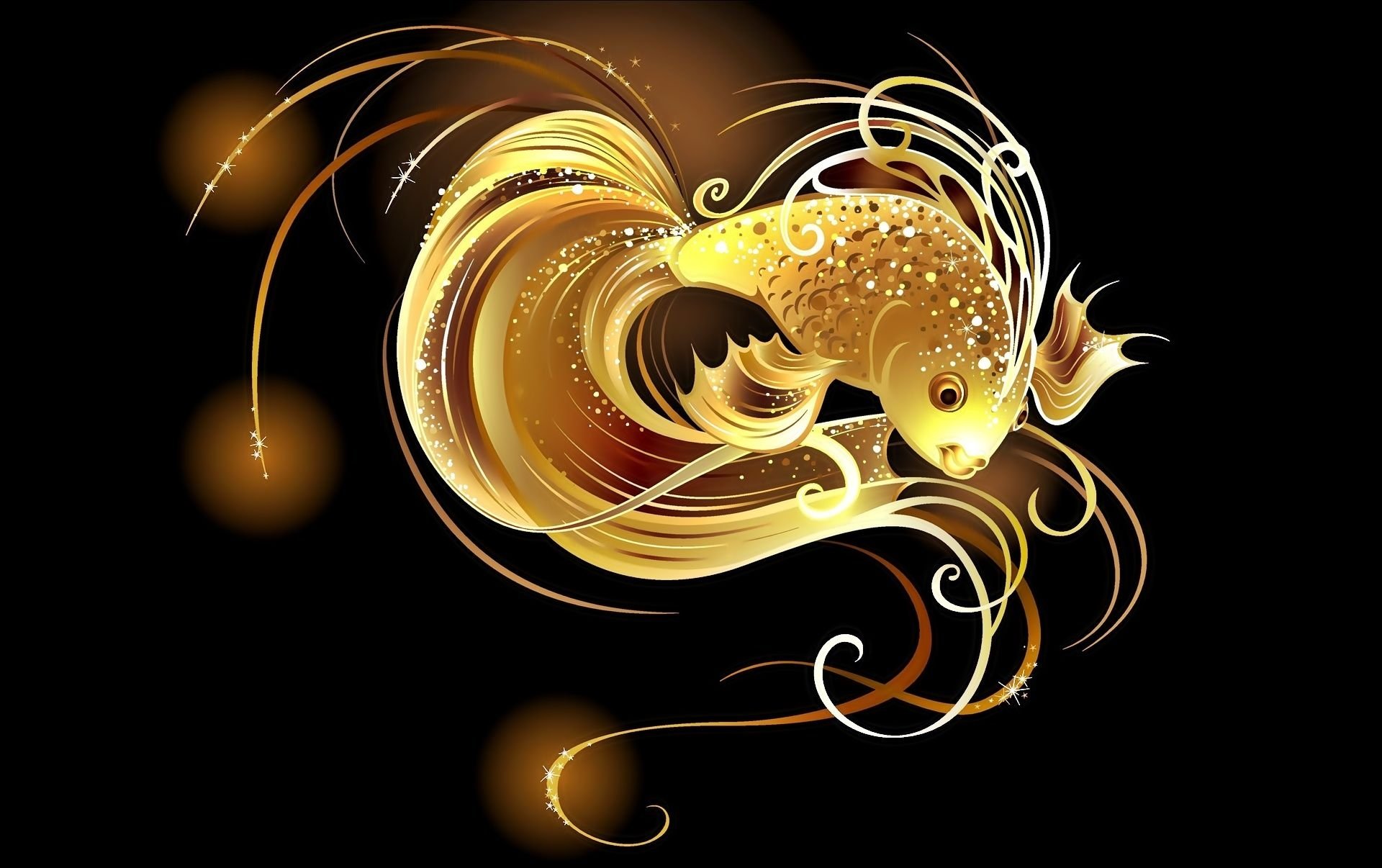 ![Золотая рыбка на черном фоне]()