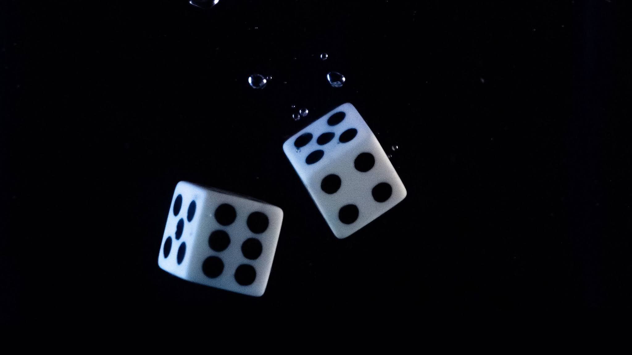![Игральные кубики на черном фоне]()