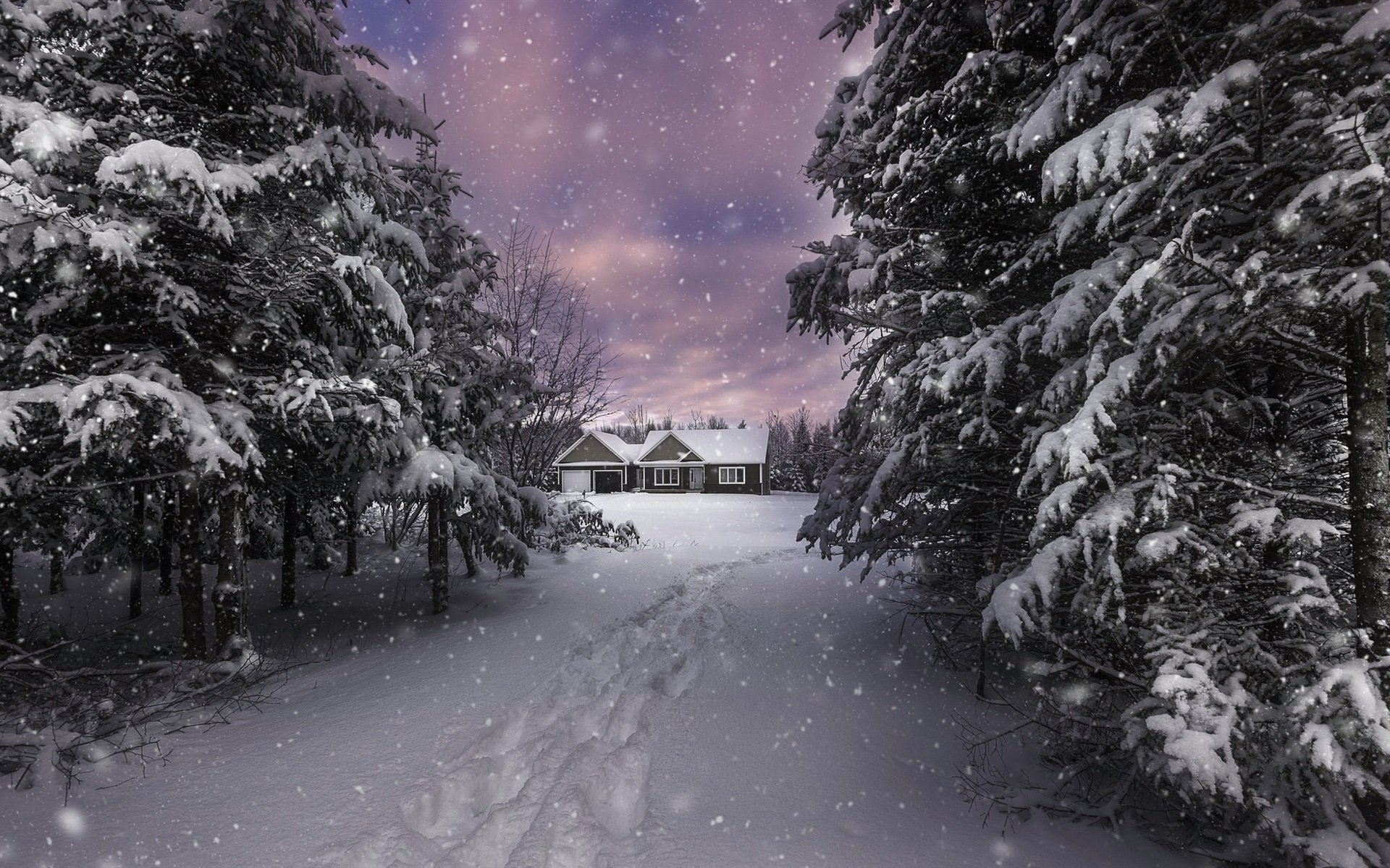 Зимний пейзаж снегопад
