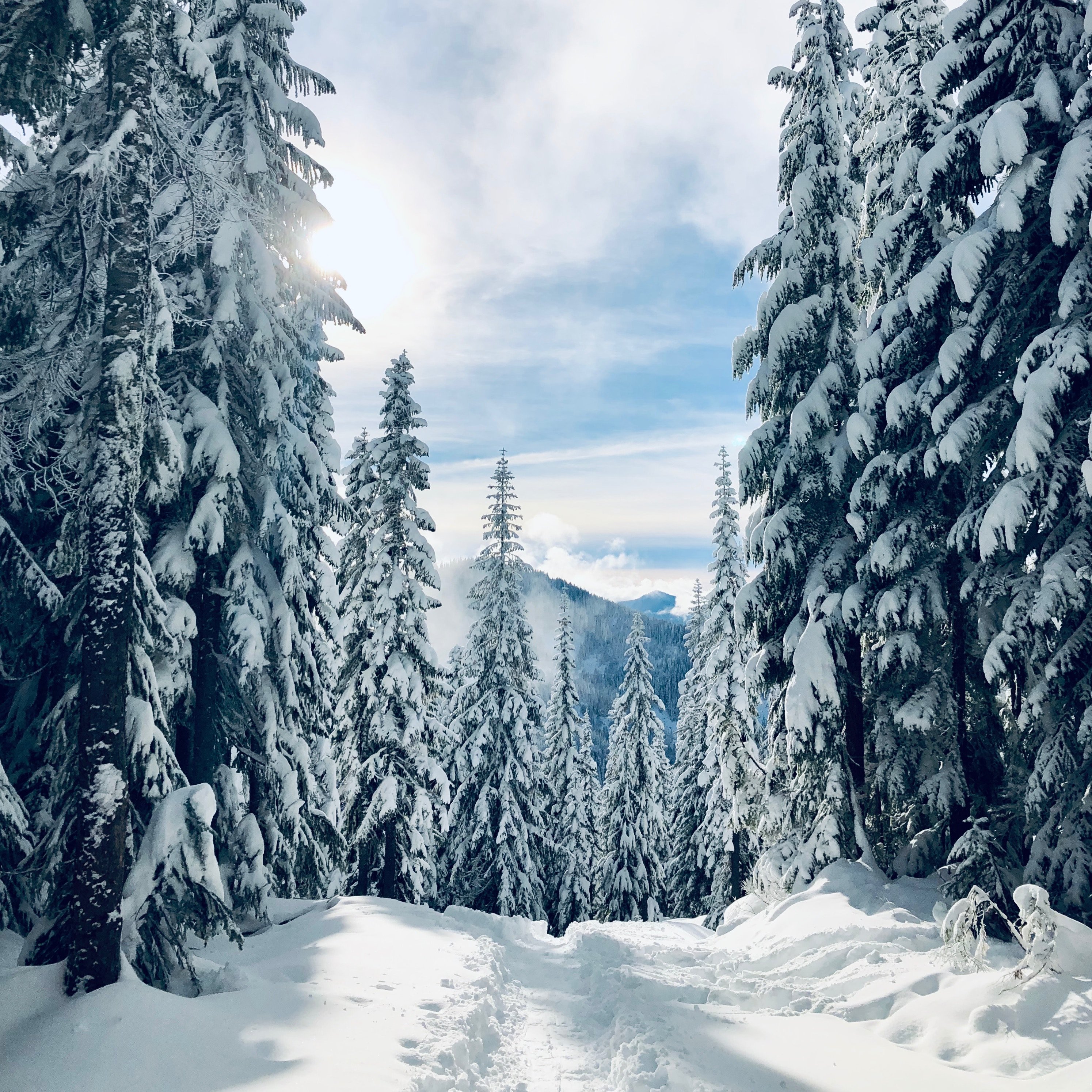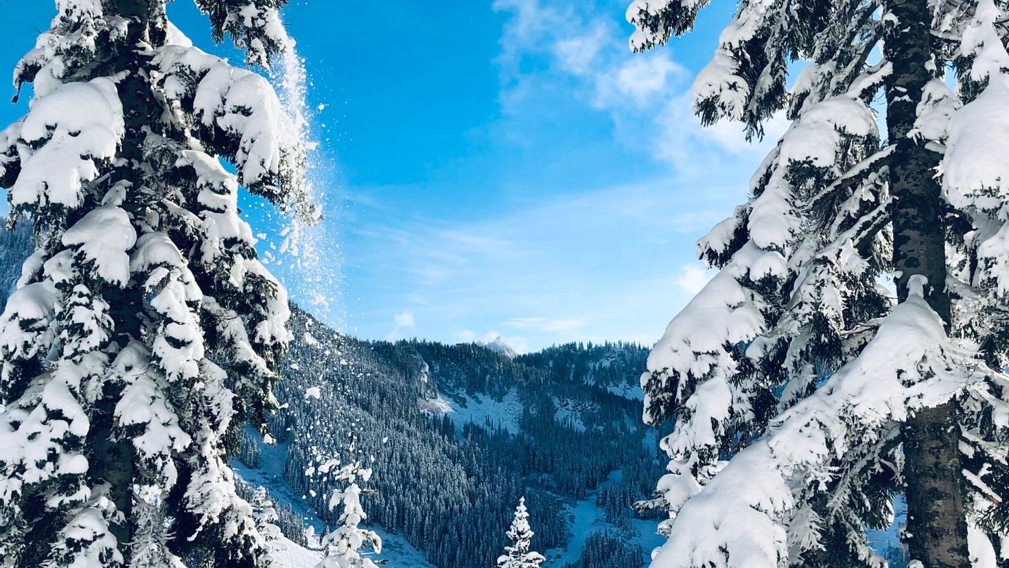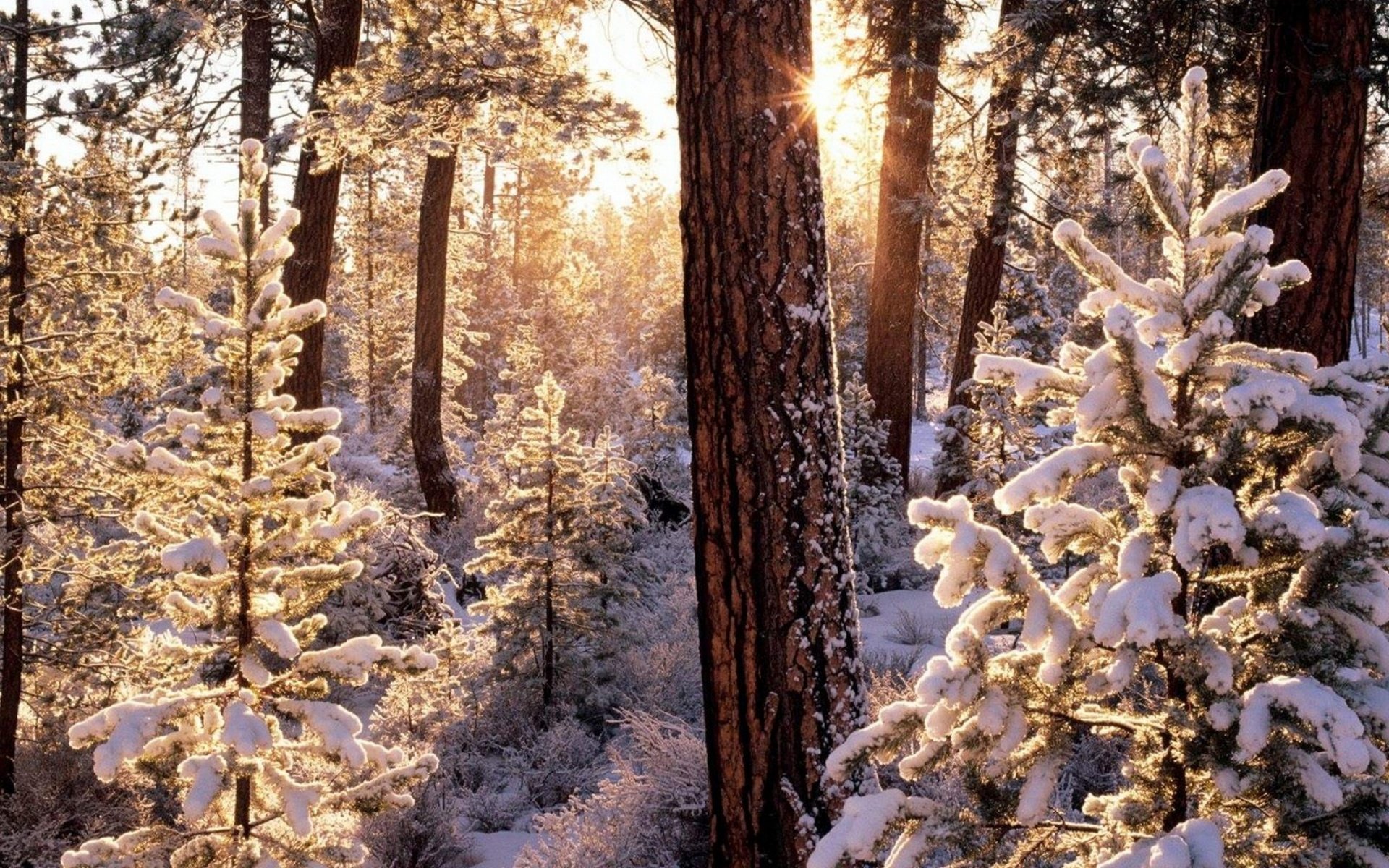 Снежные горы и сосны