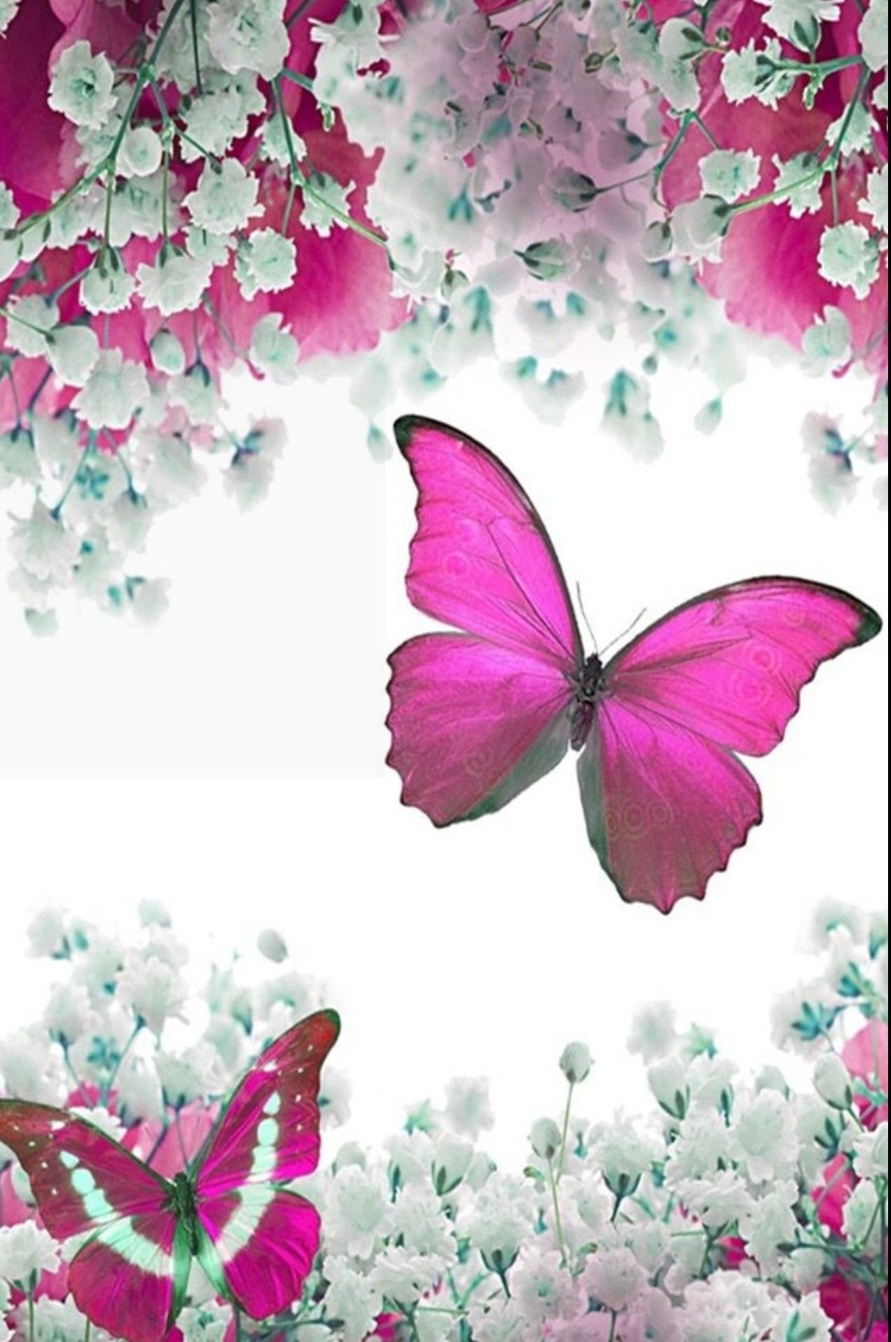 Красивые бабочки и розовые цветы