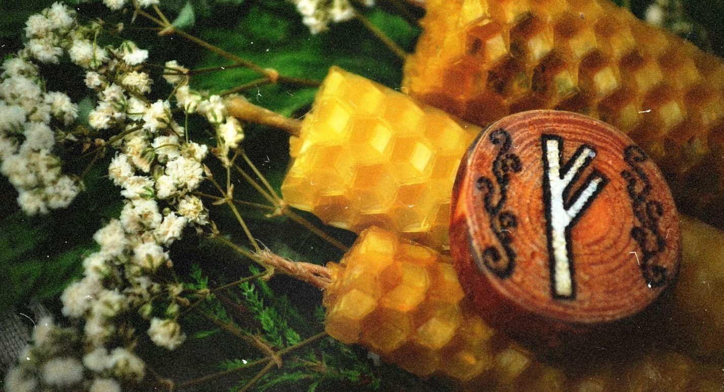 ![Свеча с руной Феху]()