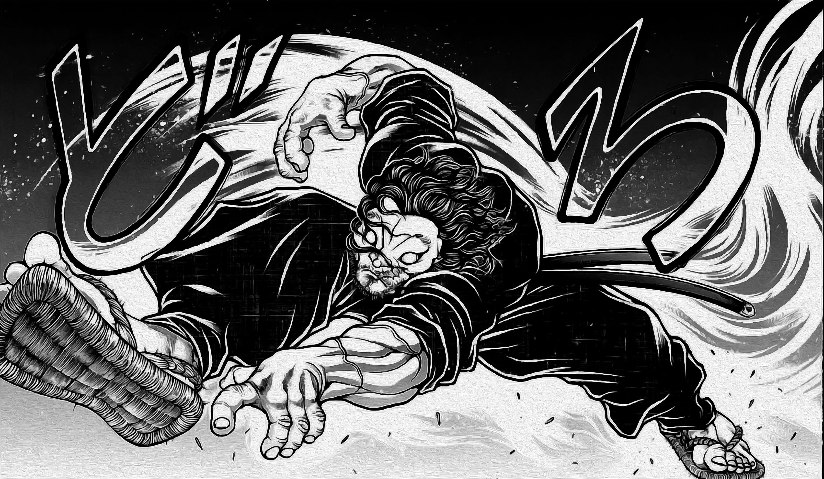 Баки Ханма черно белый