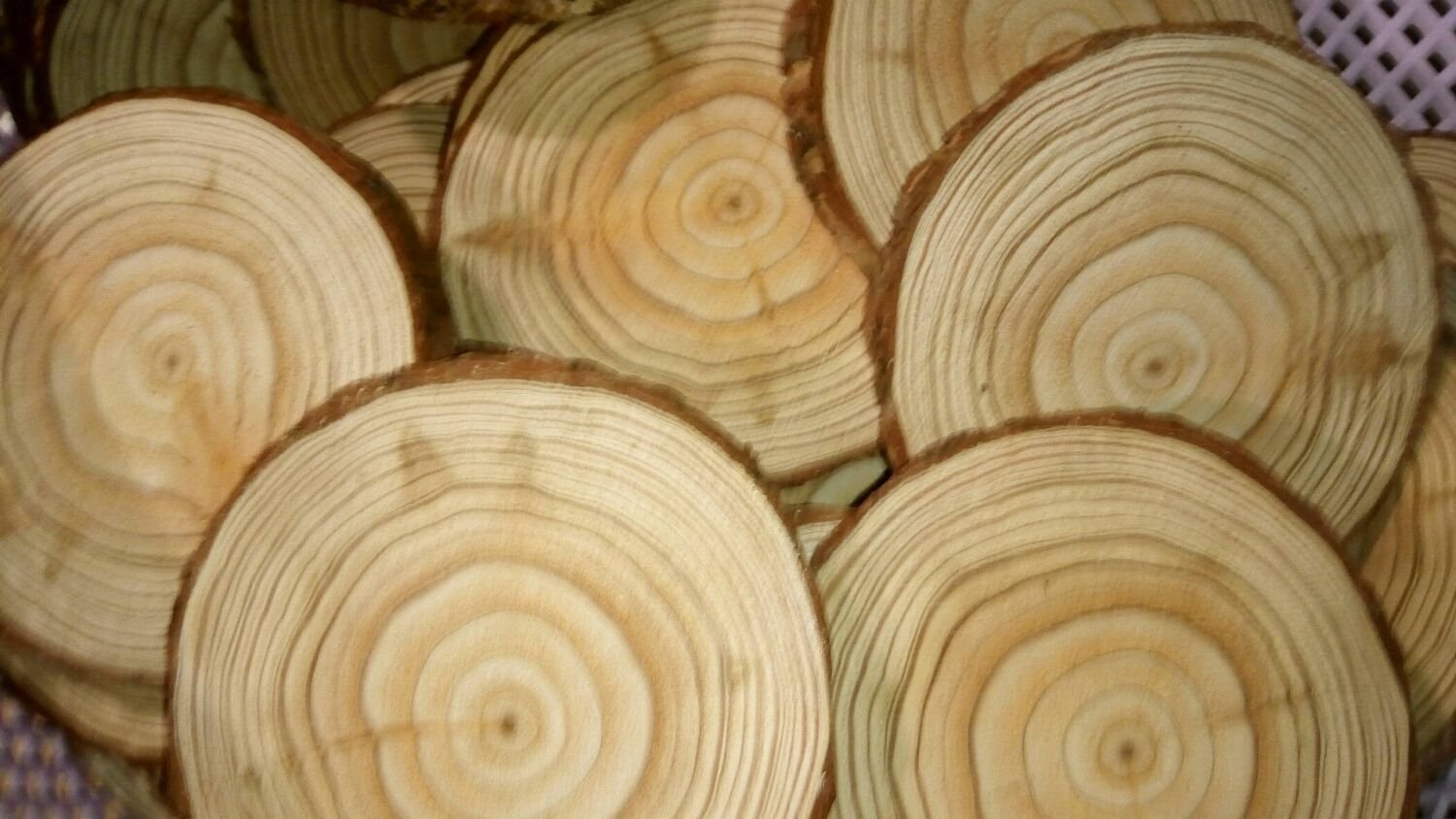 ![Спилы дерева для декора стены]()