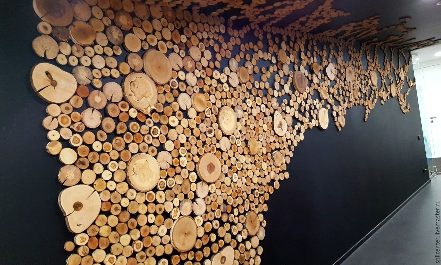 Отделка стен спилами дерева
