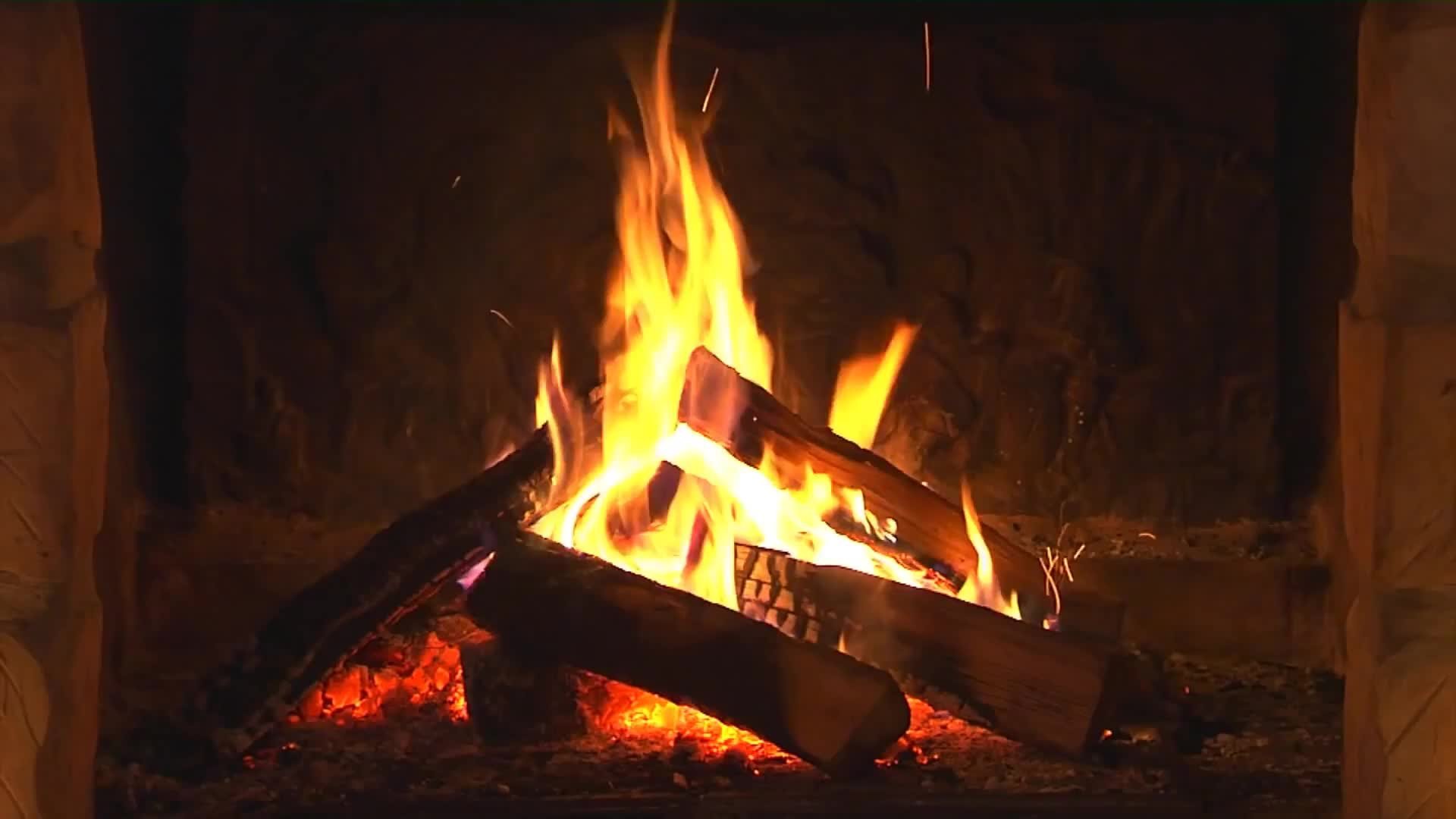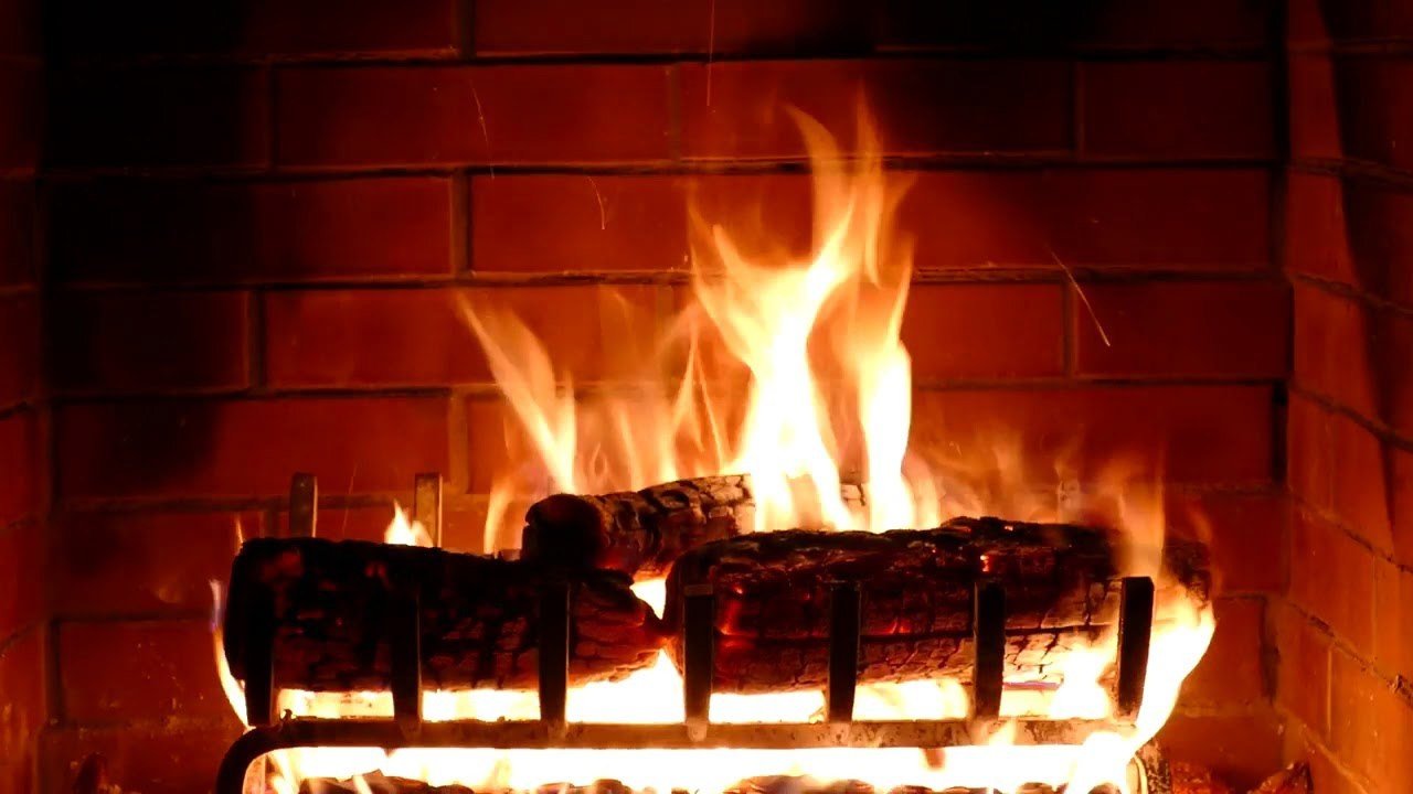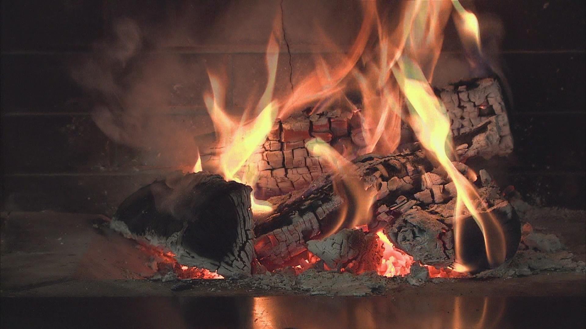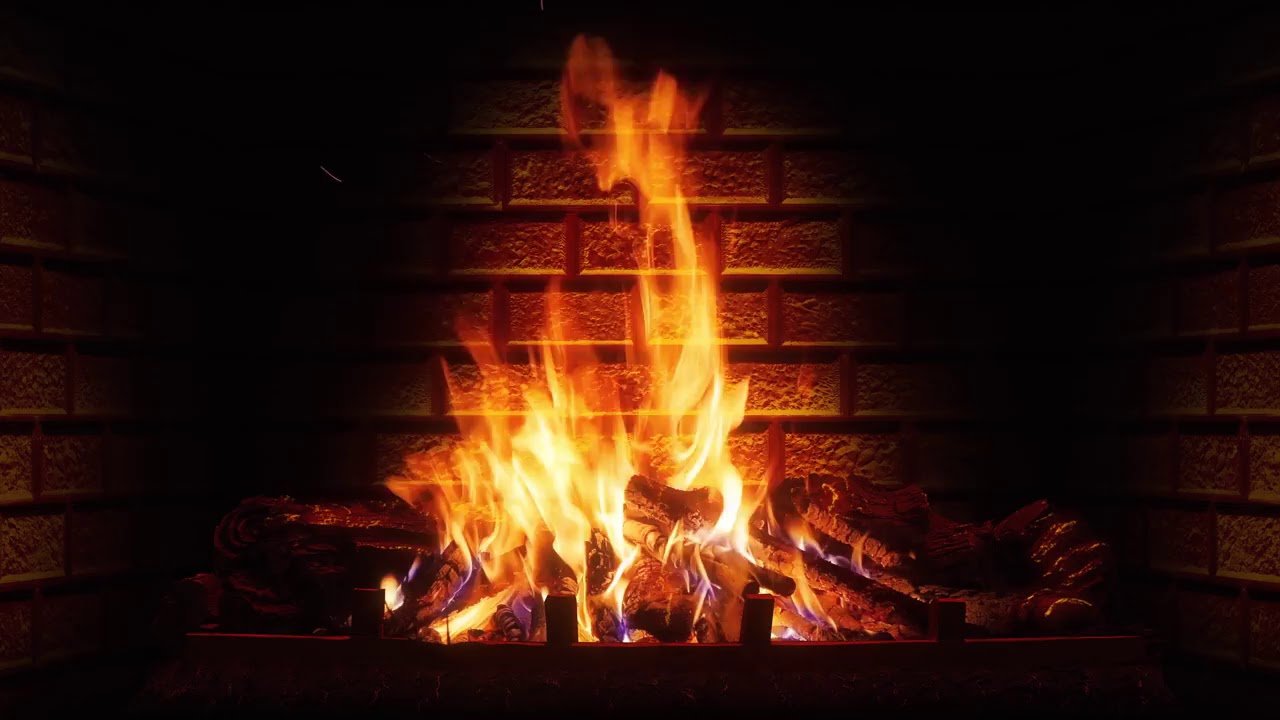 Огонь в камине новый год