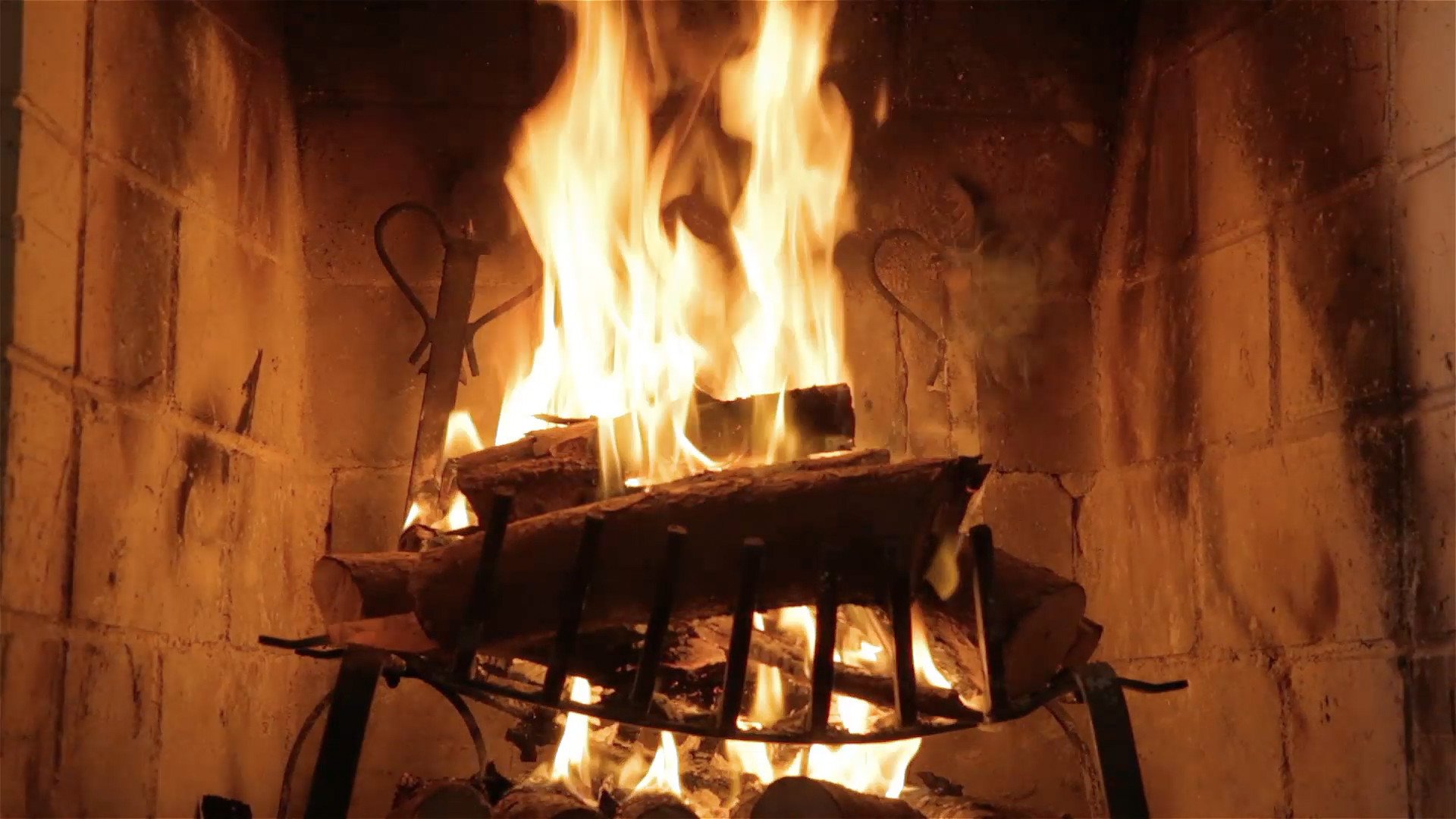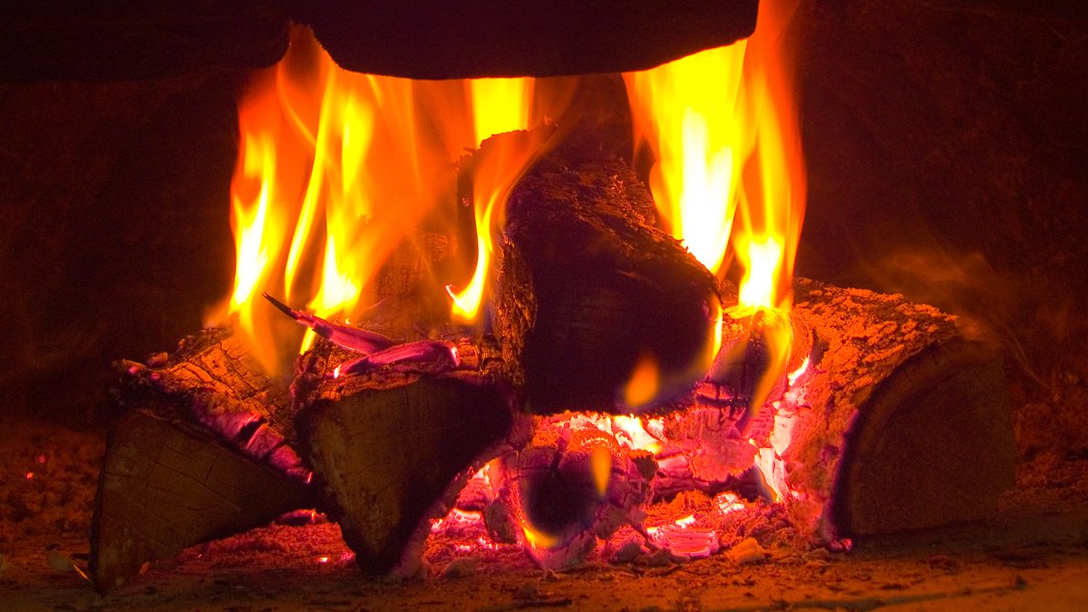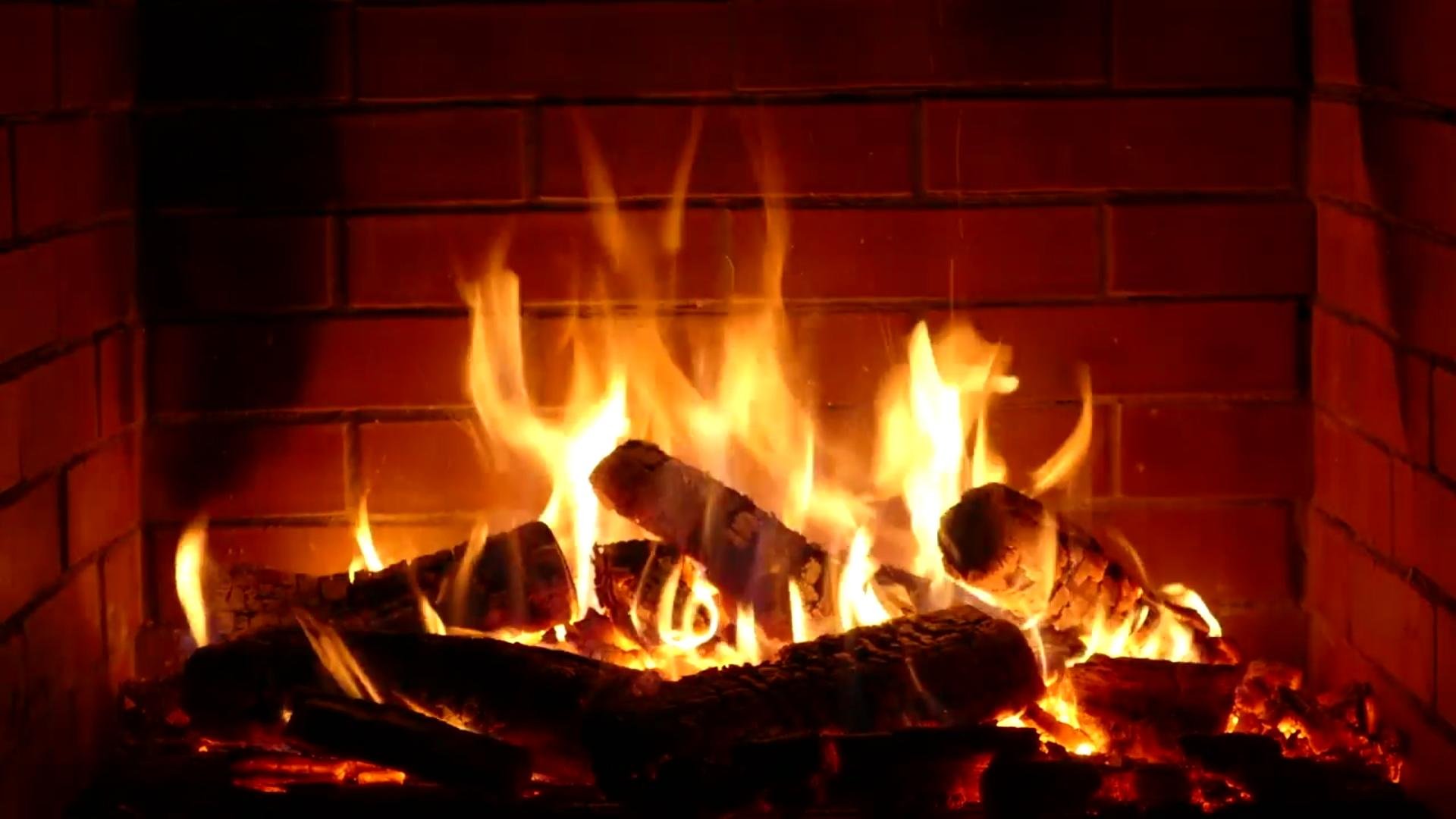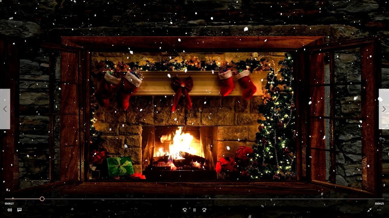 Огонь в камине новый год