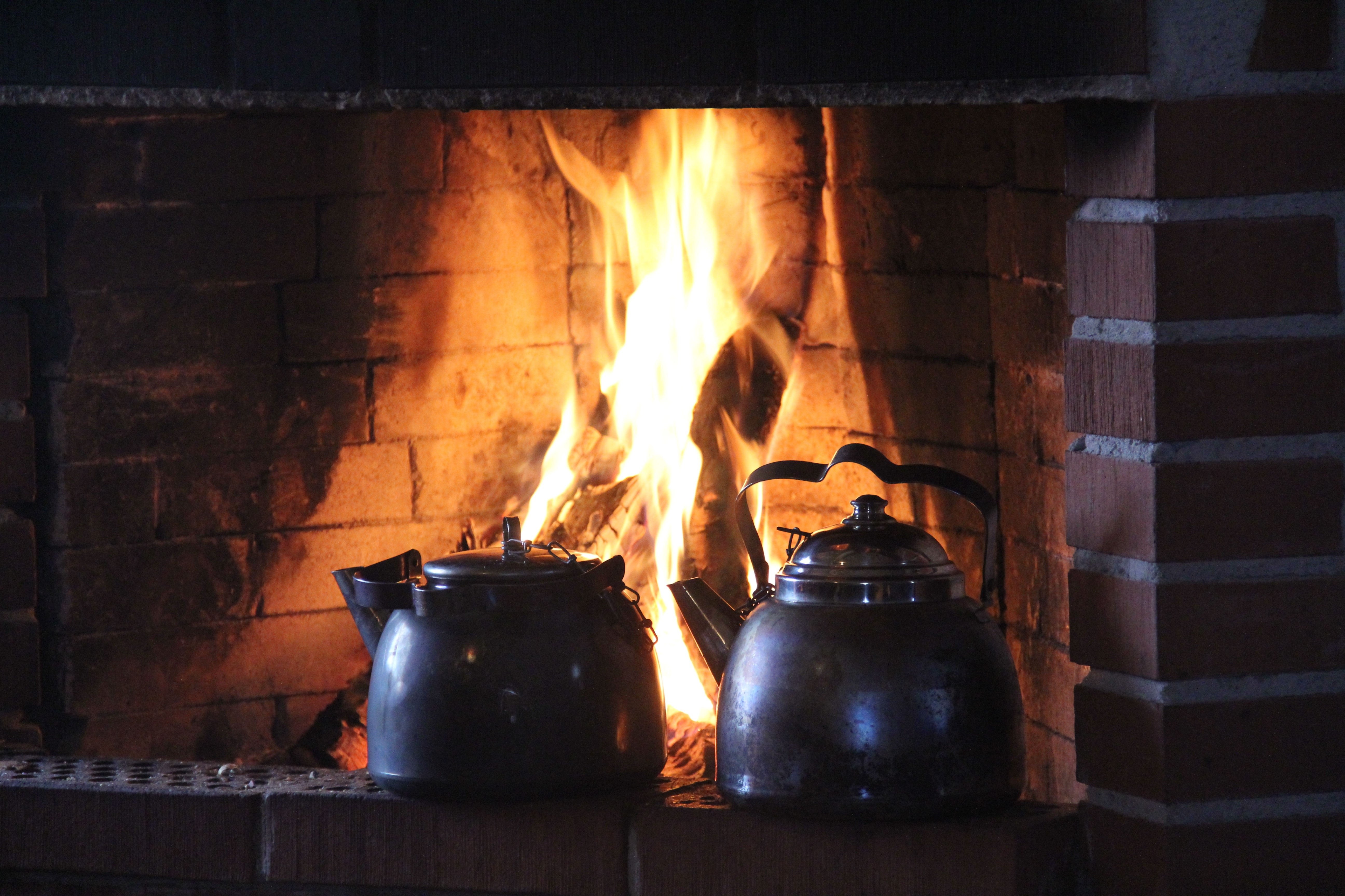 Камин огонь котелок