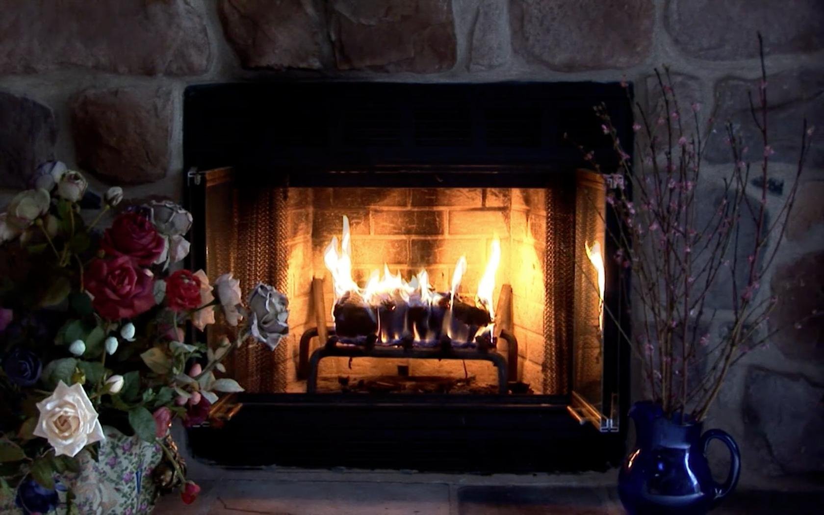 Заставка камин 4к