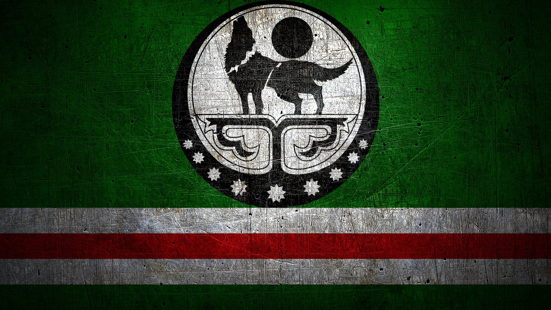 ![Флаг Чечни Ичкерии с волком]()