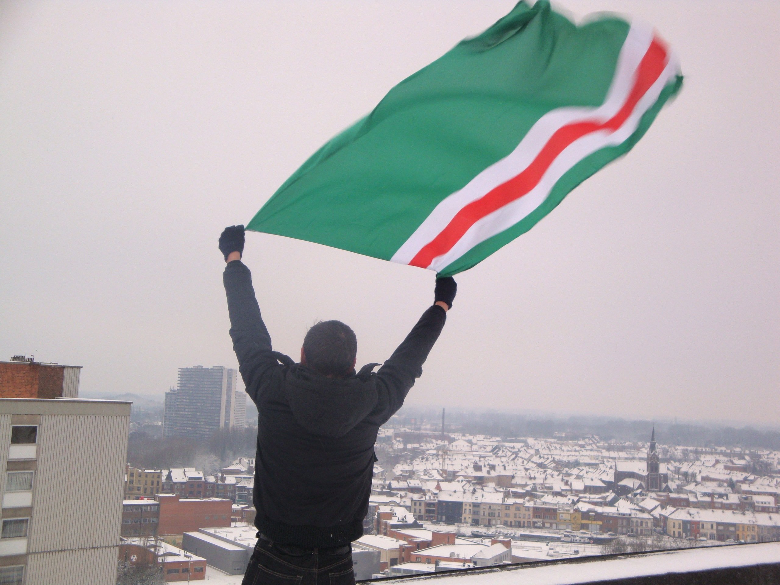 ![Парень с чеченским флагом]()
