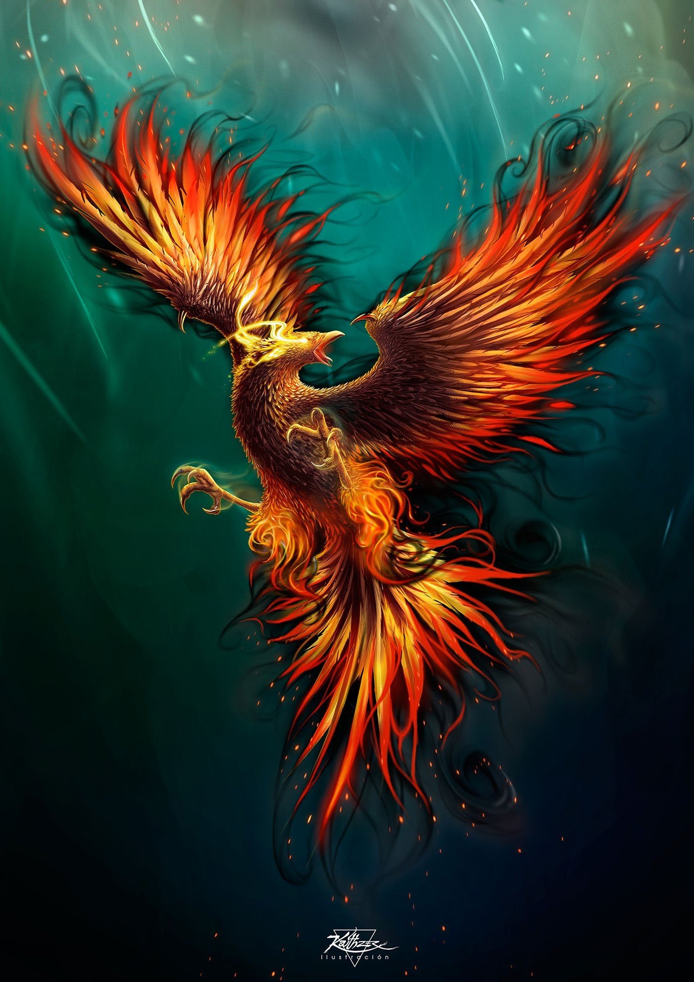 ![Птица Феникс обои]()