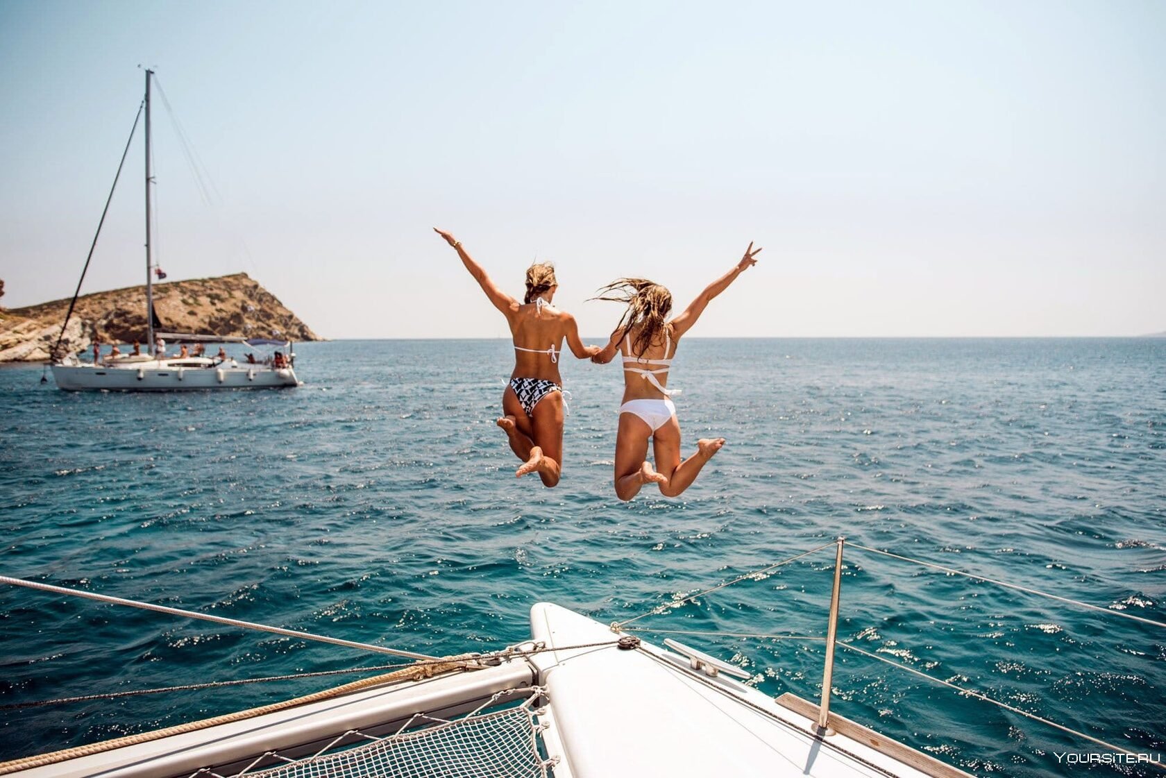 Девушки отдыхают на яхте