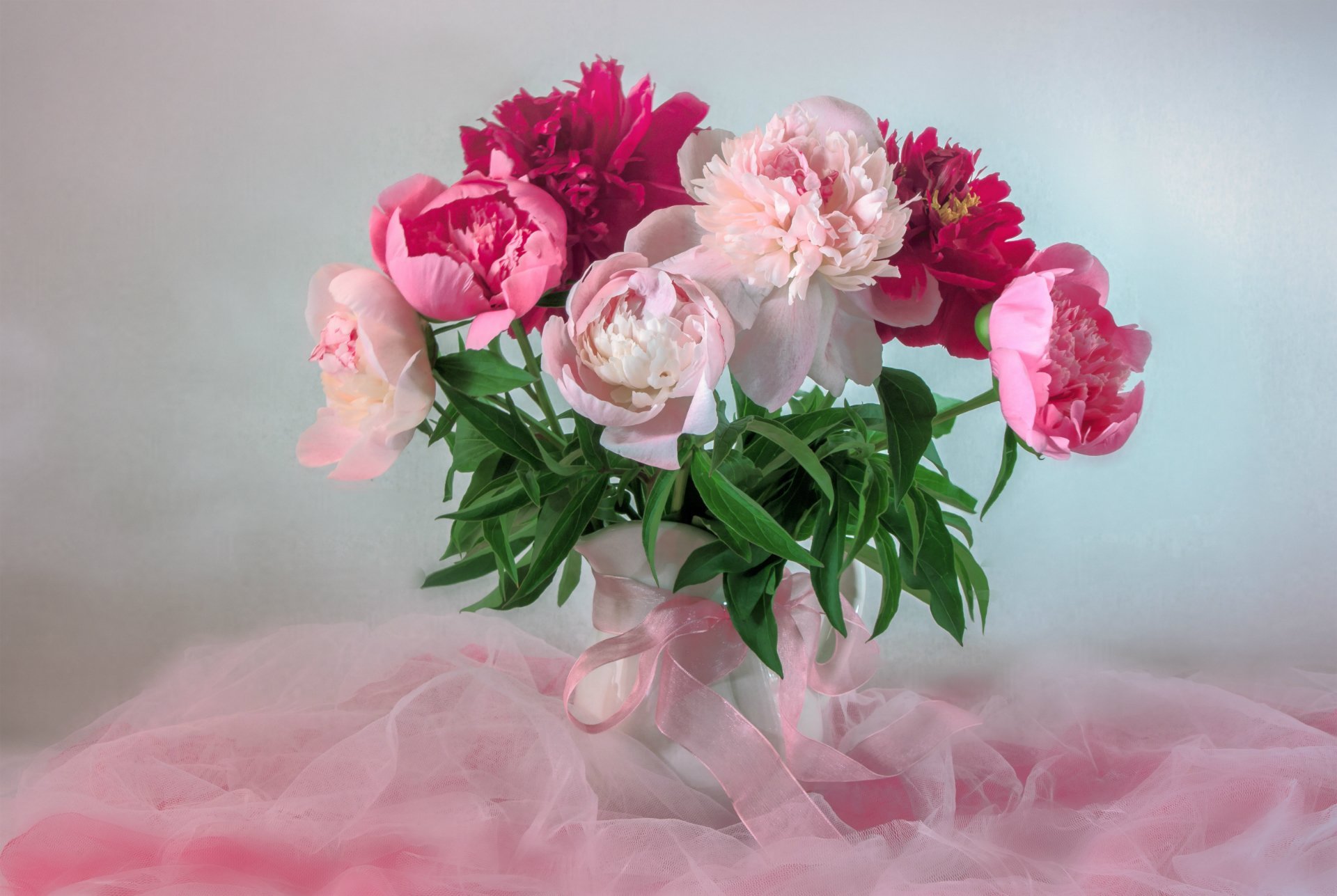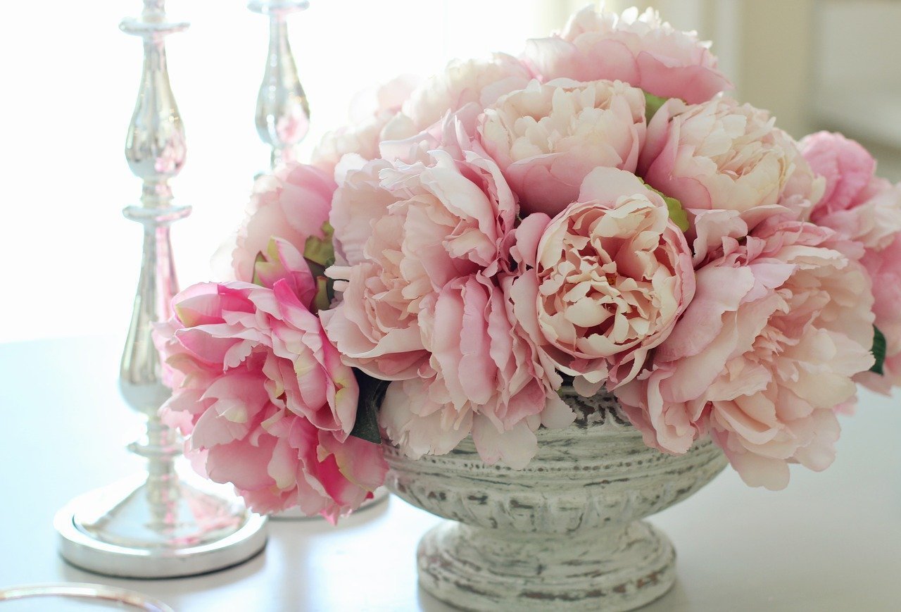 ![Нежные пионы в вазе]()
