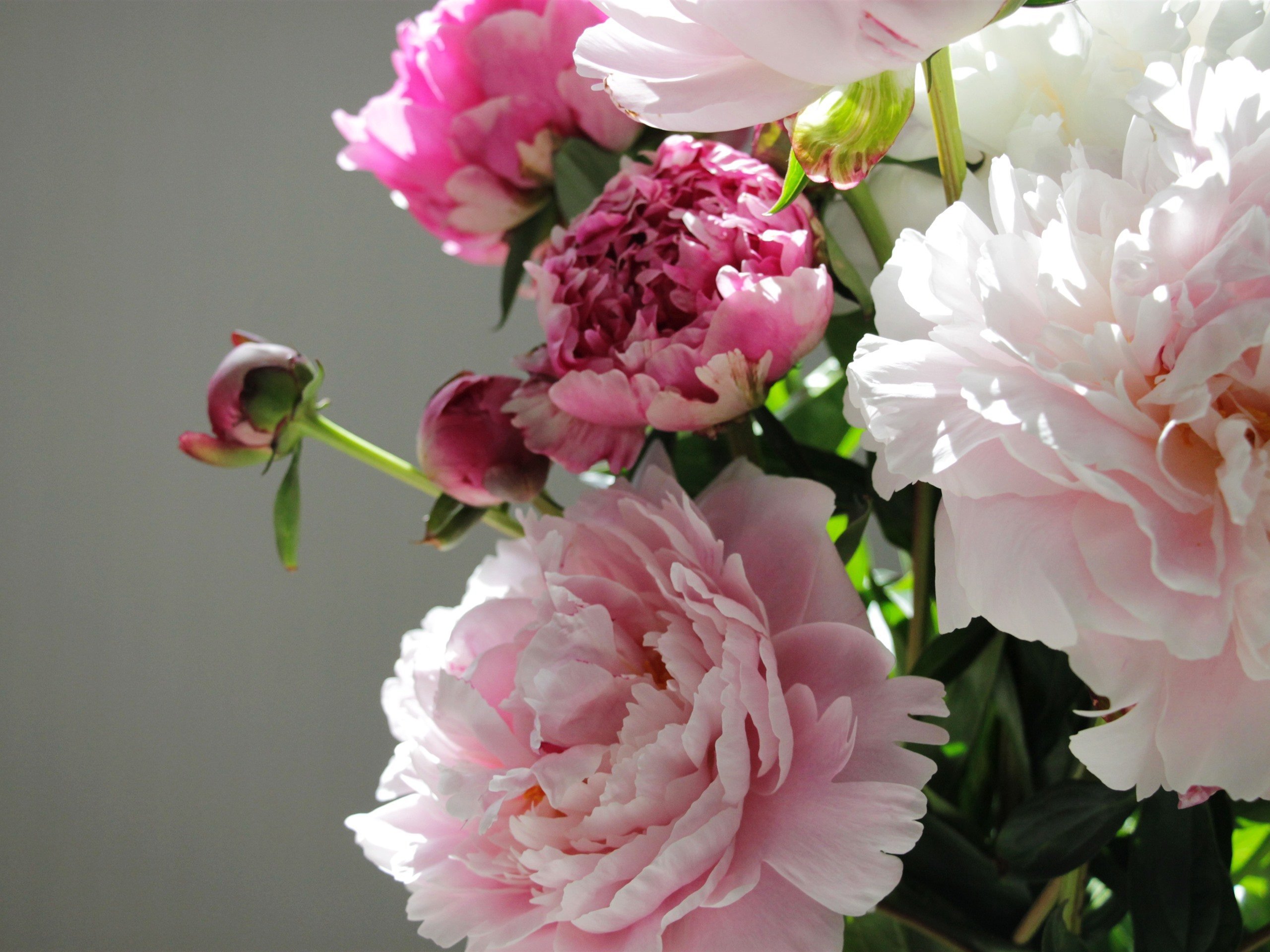 Пионы на сером фоне