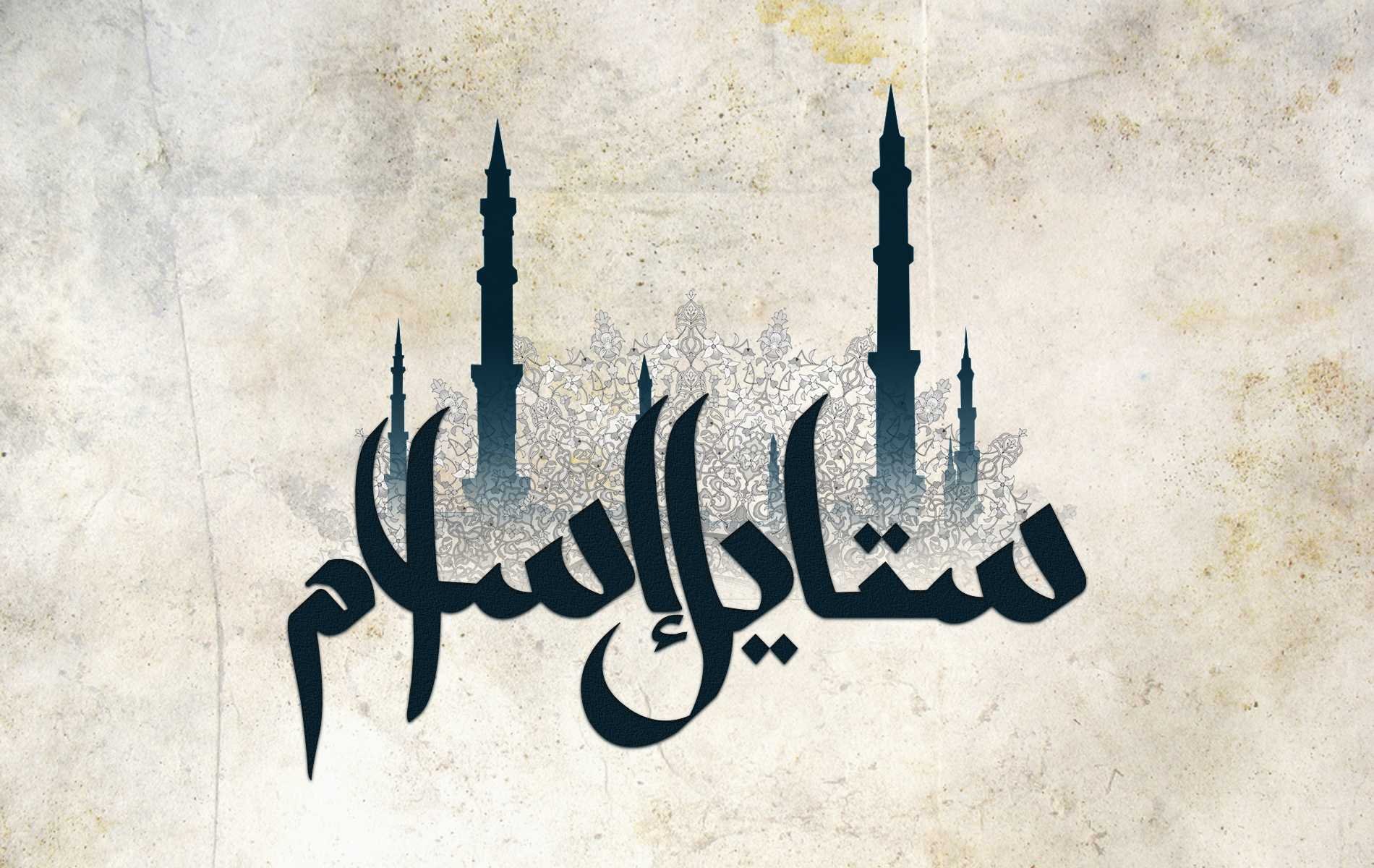 ![Арабская каллиграфия слово Ислам на арабском]()