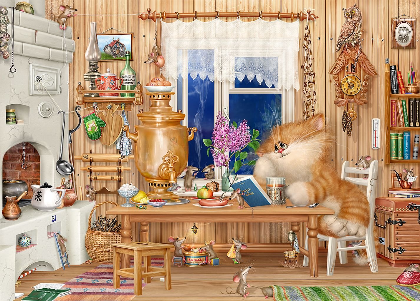 Кот и Домовой, художник Вячеслав Алатырский