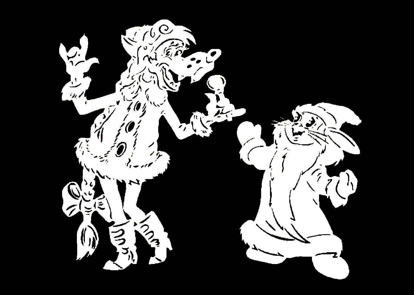 ![Сказочные герои трафареты на окна]()