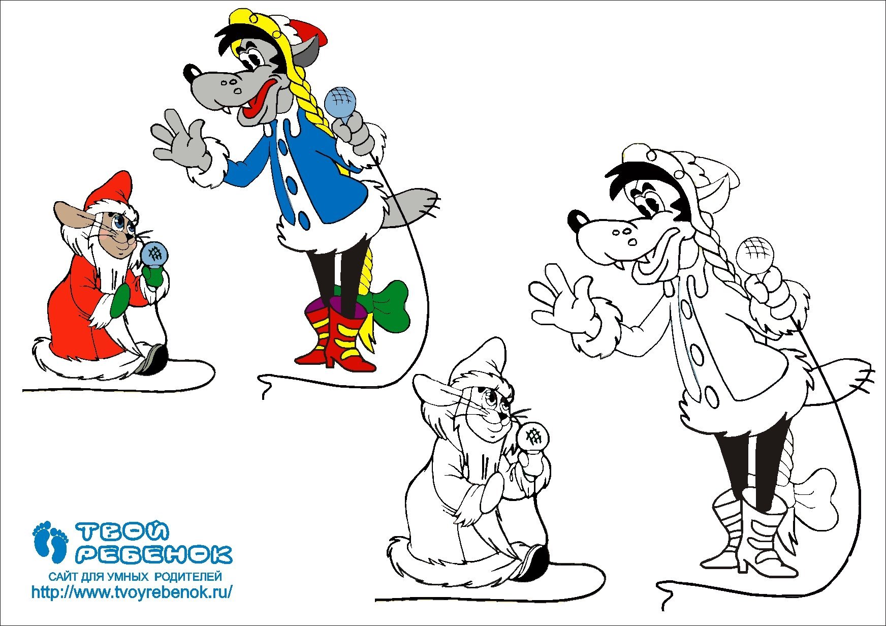 ![Ну погоди волк Снегурочка раскраска]()