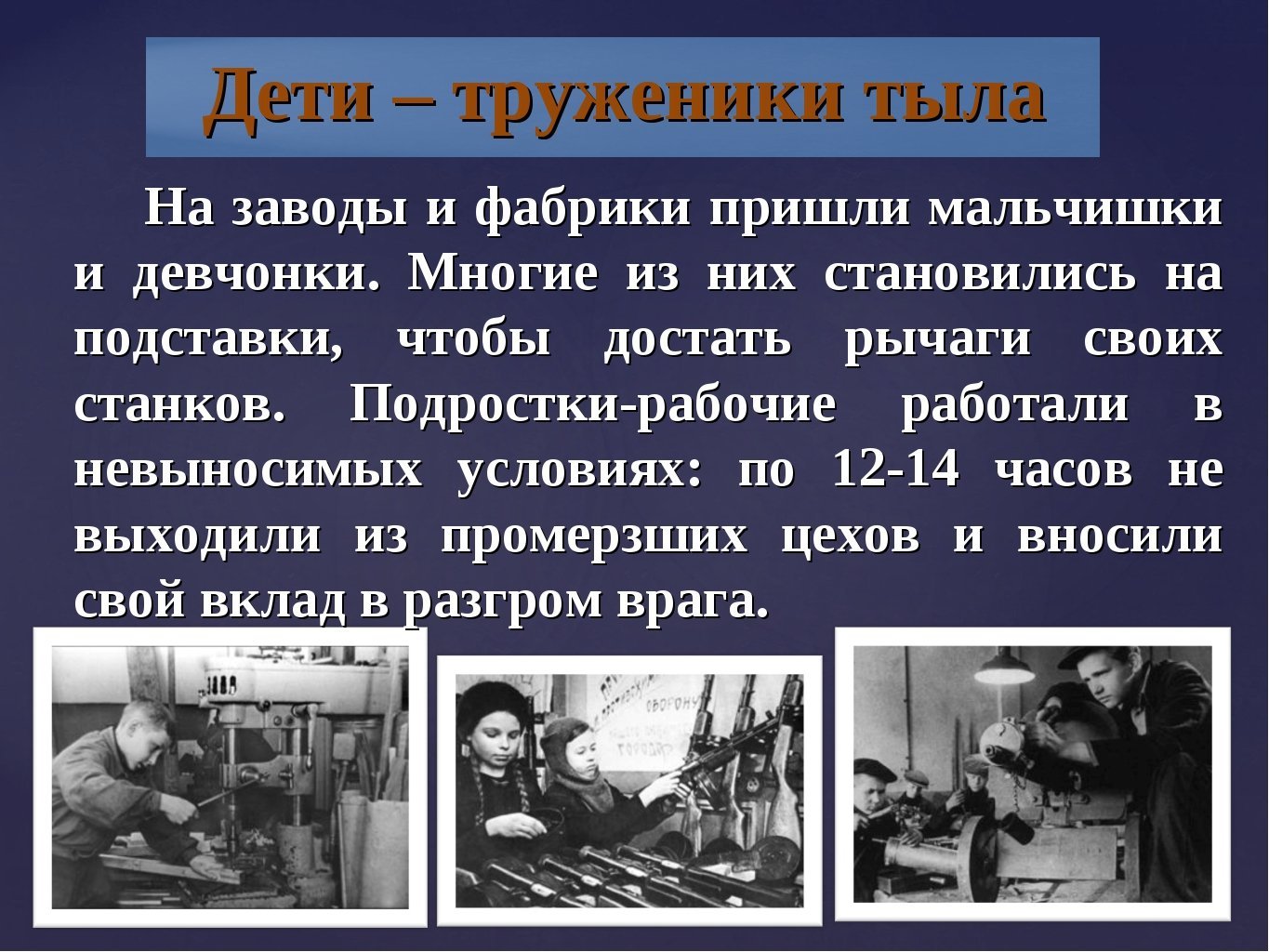 ![Дети на заводах в годы Великой Отечественной войны 1941-1945]()