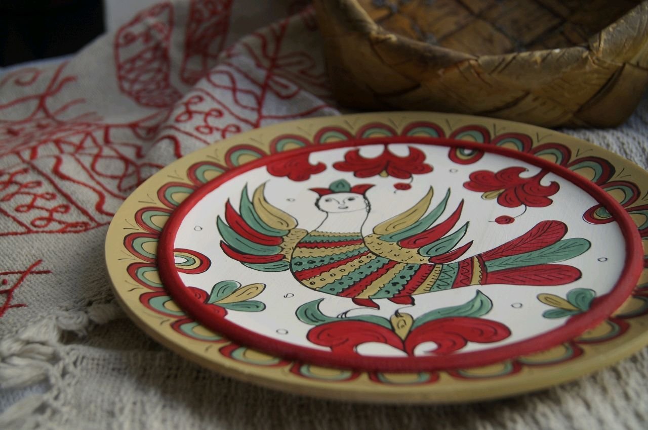 Пермогорская роспись тарелка