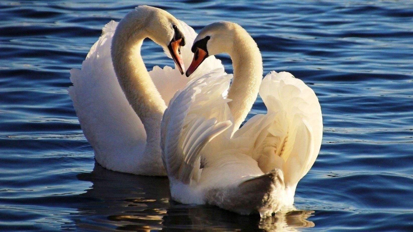 ![Лебеди обнимаются шеями]()